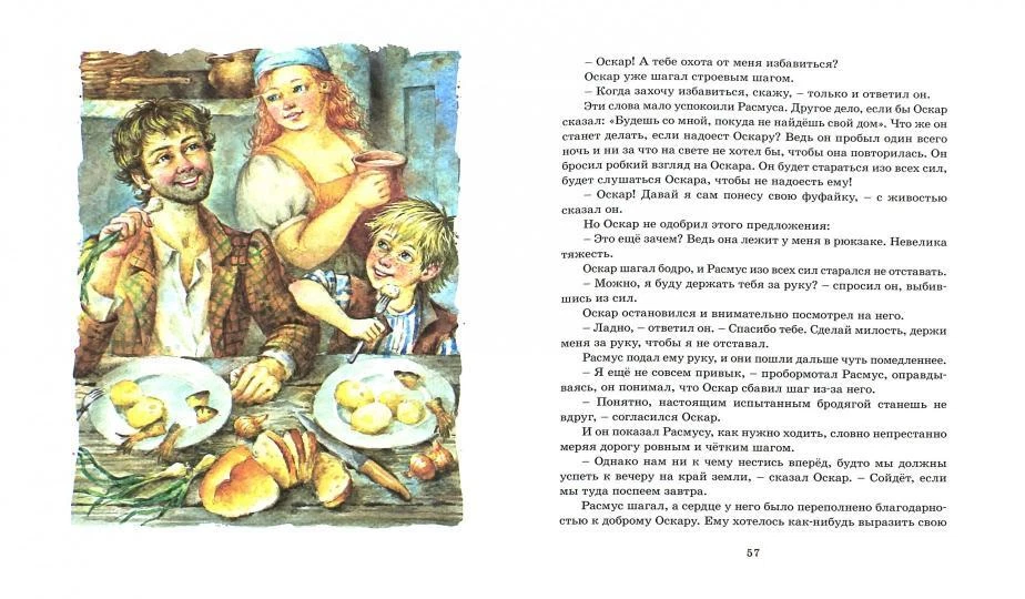 В повести "Расмус-бродяга" рассказывается о судьбоносных событиях в жизни девятилетнего мальчика, круглого сироты. Когда в приюте становится совсем невыносимо, он бежит куда глаза глядят. Во время своих скитаний Расмус знакомится с бродягой Оскаром. Впереди их ждут опасные приключения, которые, к счастью, закончатся благополучно. За эту книгу знаменитая Астрид Линдгрен получила почётную медаль Х.К.Андерсена. Для среднего школьного возраста.