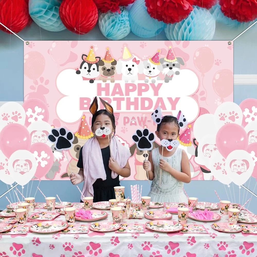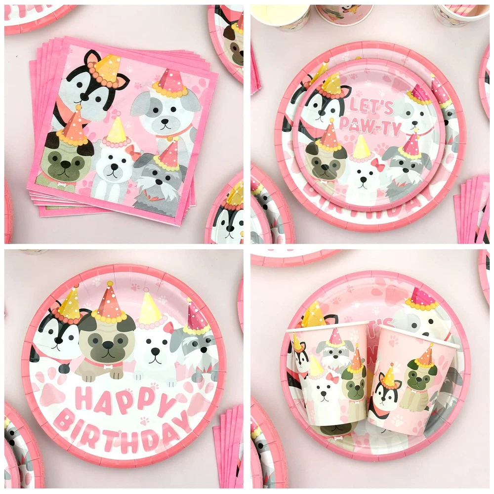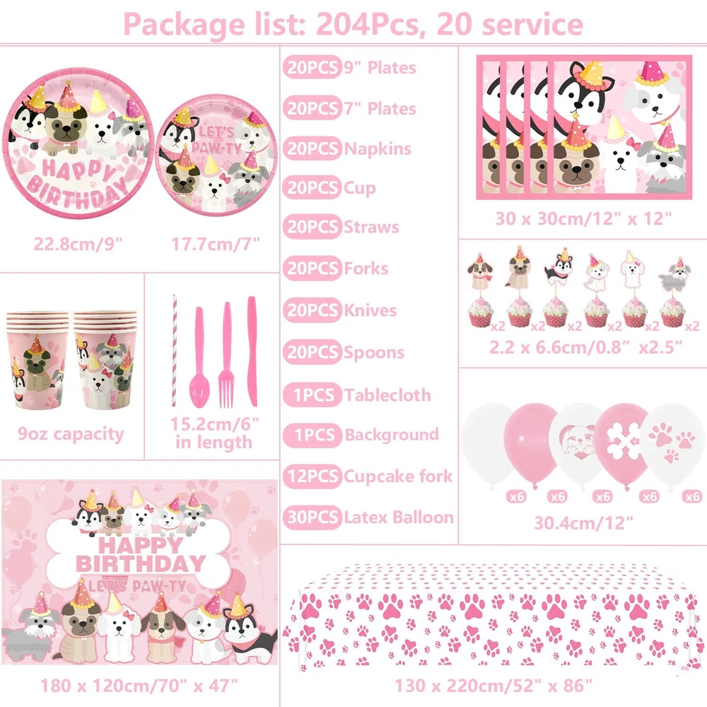 KEFAN Dog Party Supplies, Pink Dog Paw Birthday Tableware Party Decorations including Pink Dog Plates, Cups, Napkins, Tablecloth, Lets Party HAPPY BIRTHDAY Banner Backdrop, Balloons - Serves 20 Dog Paw Party Supplies Kit: A piece of pink dog paw-themed HAPPY BIRTHDAY backdrop( 5.9ft x 3.9ft / 180cm*120cm ), 12Pcs dog cake topper, 30pcs paw, and bone pattern latex balloon, 20 9" dinner plates, 20 7" dessert plates, 20 9oz paper cups, 20 napkins, 20 straws, 20 forks & knives & spoons and 1 paw table cover. Pet Element: This is a unique pink pet dog birthday decorations suit we designed. It can organize a puppy-themed birthday party or dog birthday party. The unique and bright design will make you and your friend have unforgettable puppy birthday party supplies for kids. Easy Assembly: The puppy photography background has 4 Copper holes respectively distributed in the 4 corners of the happy birthday backdrop, coming with 4 white strings, and it's easy to install anywhere, and can be applied on tablecloths, wallpaper, curtains, and photo background to add vitality. Wide Applications: This puppy-themed birthday party supplies for kids set is suitable for many fun occasions like puppy party decorations, dog birthday decorations for girls, dog birthday party supplies, kids' party supplies, girls birthday party decorations, birthday decorations for girls, pink party decorations, birthday decorations for kids, baby shower, pets' birthday, Christmas, Halloween party, photo booth props, outdoor events, and something else. Well Made: Dog-themed birthday backdrop is made of thick polyester fabrics with high-resolution printing; The "happy birthday" banner is made of thickening cardstock, and the balloons are made of natural latex. the tableware set is 100% food-grade and BPA-free, Non-toxic, biodegradable, environmentally friendly, and recyclable heavy-duty paper, which will not fold, tear or break. ( Note: Do not use microwave ovens to heat plates and cups ) Dog Paw Party Supplies Kit: A piece of pink dog paw-themed HAPPY BIRTHDAY backdrop( 5.9ft x 3.9ft / 180cm*120cm ), 12Pcs dog cake topper, 30pcs paw, and bone pattern latex balloon, 20 9" dinner plates, 20 7" dessert plates, 20 9oz paper cups, 20 napkins, 20 straws, 20 forks & knives & spoons and 1 paw table cover. Pet Element: This is a unique pink pet dog birthday decorations suit we designed. It can organize a puppy-themed birthday party or dog birthday party. The unique and bright design will make you and your friend have unforgettable puppy birthday party supplies for kids. Easy Assembly: The puppy photography background has 4 Copper holes respectively distributed in the 4 corners of the happy birthday backdrop, coming with 4 white strings, and it's easy to install anywhere, and can be applied on tablecloths, wallpaper, curtains, and photo background to add vitality. Wide Applications: This puppy-themed birthday party supplies for kids set is suitable for many fun occasions like puppy party decorations, dog birthday decorations for girls, dog birthday party supplies, kids' party supplies, girls birthday party decorations, birthday decorations for girls, pink party decorations, birthday decorations for kids, baby shower, pets' birthday, Christmas, Halloween party, photo booth props, outdoor events, and something else. Well Made: Dog-themed birthday backdrop is made of thick polyester fabrics with high-resolution printing; The "happy birthday" banner is made of thickening cardstock, and the balloons are made of natural latex. the tableware set is 100% food-grade and BPA-free, Non-toxic, biodegradable, environmentally friendly, and recyclable heavy-duty paper, which will not fold, tear or break. ( Note: Do not use microwave ovens to heat plates and cups ) Shipping from the USA All of our products are shipped from the USA, ensuring quick delivery to your destination. Payment We offer the following payment methods: PayPal, credit card, bank transfer, and eBay's secure payment system. Free Shipping & Free Returns Shipping within the USA is FREE. Additionally, any return is absolutely free for you. Risk-Free Purchase You have the option to return an item within 30 days without any justification. We cover the return shipping costs! Fast Shipping We ship immediately upon receipt of payment. Generally, the package is delivered within 2-3 days in the USA. If it takes longer, we will contact you. Quality and Costs Made in Europe, USA, China No customs fees or additional charges Total satisfaction guarantee Invoice with declared VAT available upon request in .pdf format Feedback Your feedback is very important to us. After you pay for your purchase, you will automatically receive positive feedback from us.