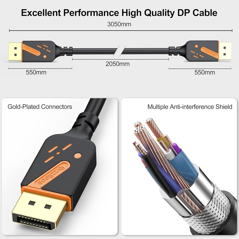 Store New Arrivals Add to Favorite View Feedback Contact Short Displayport Cable 1 FT, 2-Pack DP to DP Cables, 4K Display Port Cable Male Description Item model number DBD23611 Number of Items 2 Color Orange Brand RyzzRooa Cable Type Display Port Connector Type DisplayPort Compatible Devices Projector, Laptop, PC, Monitor Manufacturer RyzzRooa Special Feature High Speed, Lightweight, Short Package Dimensions 8.15 x 6.54 x 0.55 inches; 2.4 ounces Size 1 FT 【Short DisplayPort Cord 1 FT/12 Inch】Short displayport cable easier to keep our desktop tidy without excess, and more suitable for short-distance connection occasions; Connect and configure your monitor for an Extended Desktop or Mirrored Displays 【NOTE】The total length of the product is 1FT/12Inch/3050mm (including ports). The line length is 0.67FT/8.07Inch/2050mm. Please confirm the length required for the device you want to connect 【A Unique Style】The unique innovative twin-shot injection for our DP to DP cable, it’s the collision between the lively color and the traditional, adding the vivid feeling for the computer connect cable 【Open Your 4K World】Suitable for connecting a DisplayPort-Equipped computer, docking station, NVIDIA and AMD graphics card to HDTV /game screen with Display Port for crystal clear audio and high video. Supports 3D and Refresh-rate up to 4K@60Hz, 2K@165Hz, flickering-free to provide a smooth gaming & visual experience 【FreeSync and G-Sync Technology, 3D, ARC】The high refresh rate of 2K@165Hz makes the game more smooth, the screen scrolls more smoothly, and the touch feedback is faster. This dp cable support 21.6Gbps high-speed transfer,HBR2 rated; Supports FreeSync and G-Sync technology, 8-bit and 10-bit deep color and sharp images;Compatible with Audio Return Channel (ARC), 3D Surround, Digital 7.1, 5.1 channels, DTS-HD, and Dolby audio 【Ultra Durability】Flexible&Durable UL cable with 15,000+ bending tests. 24K gold-plated connectors, 100% pure copper wire core and 5-layer shielding cable ensure signal stability, a clear picture of the game flowing and has a friendly interface 【Reliable After-Sales】We provide reliable after-sales service for 2 years. If you have any questions, please contact us and we will respond within 24 hours Product Description Bi-directional DisplayPort to DisplayPort Cable This cable transfers signal from DisplayPort source to DisplayPort monitor, it's a bi-directional cable; It ennables you to connect a monitor with DisplayPort input to video source with DisplayPort output. Note: Plug and play: without any additional driver or software required. The unique latch-free design makes plugs and unplugs effortless. The total length of the product is 1FT/12Inch/ 3050mm (including ports). The line length is 0.67FT/8.07Inch/ 2050mm . Please confirm the length required for the device you want to connect. Advanced & Superior Construction The unique innovative twin-shot injection for our DP cable, it’s the collision between the lively color and the traditional, adding the vivid feeling for the computer connect cable. Gold-plated connectors: Resisting corrosion, improve the signal performance , ensuring the high-speed, loss-free transmission. Formed Struture Design: Stronger design, supports bending in any direction without broken, let our DP cable more durability. Soft PVC Jacket: OD 5mm, Softy PVC jacket with 5-layer shielding inside, can stand 15,000+ bending tests. Advanced & Superior Construction Enjoy the 4K @60Hz resoluiton Supports resolutions for 2K @165 Hz DisplayPort audio support 21.6Gbps high-speed transfer,HBR2 rated; DP cable supports FreeSync and G-Sync technology, 8-bit and 10-bit deep color and sharp images; Compatible with Audio Return Channel (ARC), 3D Surround, Digital 7.1, 5.1 channels, DTS-HD, and Dolby audio. Advanced & Superior Construction Mirror Mode: Enjoy more favorite films with bigger screen, getting more interesting and enjoyable Extended Mode: Works and entertainment for multitasking Multi-Screen Splicing Mode: Support the screen connection by our displayport to displayport cable, up to 6 Screens ABOUT US We offer the best prices around on high quality products. Our E-store includes media such as books, movies, music and games while offering electronics, toys, sporting apparel, clothing, tools, general home, garden items and more. SHIPPING We are always working hard to ensure your package arrives as soon as possible. Please understand that some factors like weather, high postal traffic, and the performance of shipping companies are outside of our control. We offer free shipping to the lower 48 states and ship within 2 business days of payment, usually sooner. We do not accept P.O. Boxes. Please provide a physical address. RETURNS We offer a 30-Day Return Policy on items which you are not completely satisfied with. You have the option for a full-refund or an exchange of the item. No returns are available on items shipped outside of the USA. PAYMENT We accept PayPal. CONTACT US This page content is yet to come Please ad us to your favorite seller and visit again later Thank You CUSTOMER SATISFACTION We try our very best to make sure every customer is completely satisfied. If there's a problem, message us! We're happy to help.