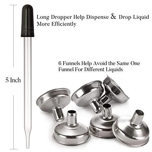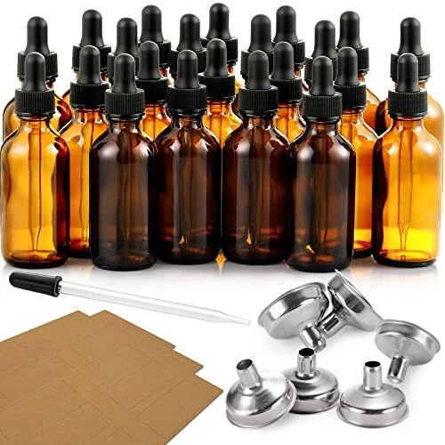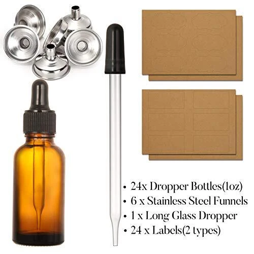 ★Package Includes: 24 pack 1oz (30ml) amber glass eye dropper bottles + 6 stainless steel funnels + 1 long glass dropper + 24 labels. Bottles are packaged in grid-shaped partition and thick carton box to prevent damage in transport. ★High Quality Material: These essential oil dropper bottles are made of strong beautiful amber glass, thick black plastic lids and corrosion-resistant silicone tops. ★Multi Uses: Great for DIY essential oils, colognes, tincture, cosmetics, perfume oils, beard oil, hair oil or other liquids. The eye droppers allow for the perfect amount of product to be used every time. ★Ideal Travel Bottles: The convenient size makes it perfect for travel in bags as the Leak-Proof covers. You can travel with liquids for daily eye, face and body care. ★Functional Accessories: 6 stainless steel small funnels help fill different liquids to avoid mingling and mix with other liquid impurities. The long reusable glass dropper help dispense and drop liquid more efficiently, especially when little liquid is at the bottom. 24 labels help mark names for different liquids. *lucky*vorobey* Kindly note: If you would like to order more quantity than shown is available, you are welcome to place one order fox maximum available quantity and place one more order again because we always have more, than shows in available items. Best wishes