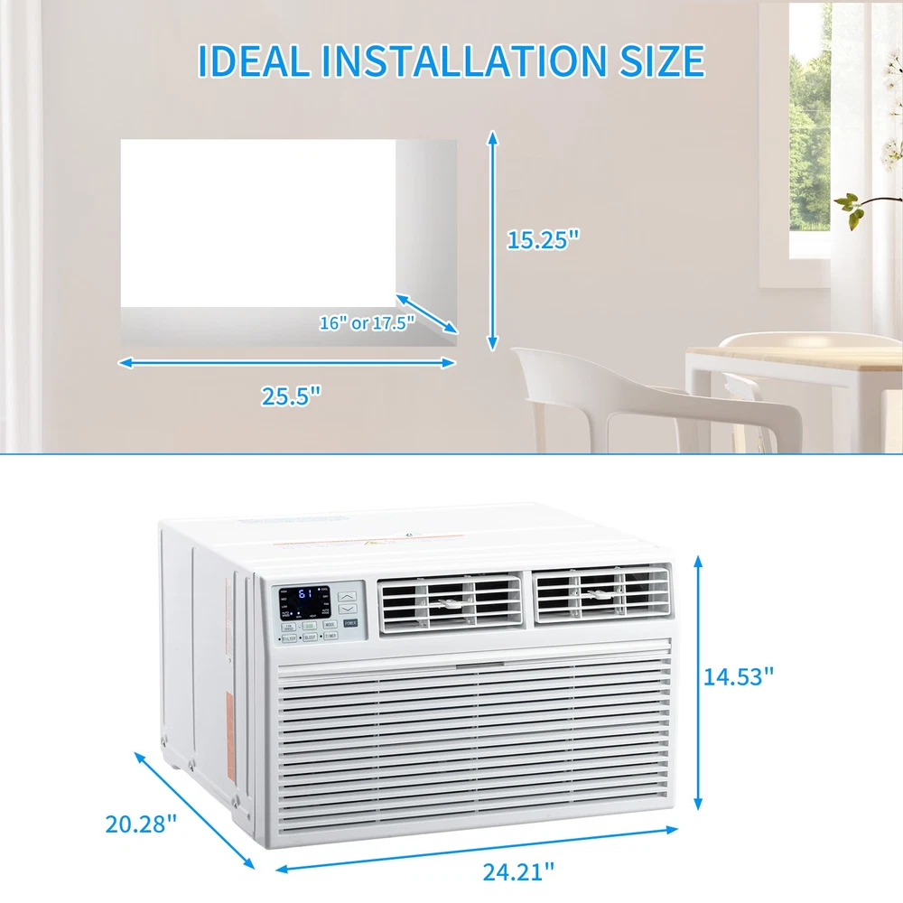 listing template VISIT OUR STORE SIGH UP FOR EMAIL 10000 BTU 450 Sq ft Through-the-Wall Air Conditioner &Heat Wi-Fi Enabled AC Unit ROVSUN 10,000 BTU Through-the-Wall Air Conditioner with Heat and Dehumidifier, Wi-Fi Enabled, Energy-Efficient AC Unit with Remote & APP Control, for Large Rooms up to 450 Sq.Ft., White Introductions: Elevate your living space with ROVSUN Through-the-Wall Air Conditioner, a versatile and energy saving solution for year-round temperature control. Designed for medium to large-sized rooms, this unit not only cools but also provides heat and dehumidification, ensuring your environment is always just right. With its Wi-Fi enabled features, you can effortlessly control your indoor environment from anywhere using your smartphone. Features: 1. Through the Wall Installation: This wall unit air conditioner is suited for a through the wall installation; It is not properly vented for a standard window installation; Delivers a powerful 1,000 BTU cooling capacity and 10600 BTU heating (meant to be used as a primary heat source in the coldest months) , making this AC unit perfect for any season in spaces up to 450 sq.ft. 2. 5-in-1 Versatility: Enjoy the convenience of Cool, Dry, Fan , Auto and Heat. 3. Smart Control at Your Fingertips: With Wi-Fi connectivity, this AC unit allows for easy adjustments via onboard controls, a handy remote, or directly from your smartphone. 4. Whisper-Quiet Performance: Designed to keep noise levels low, this AC ensures your peace and quiet remain undisturbed, making it ideal for bedrooms, living rooms, and offices. 5. Powerful Cooling on a Budget: Our heat and ac unit will give your electric bill a break by using the 'Energy Saver' or Sleep' mode Specifications: 1. Color: White 2. Power Supply: 1Ph, 230/208V~, 60Hz 3. Cooling: RATED Capacity: 10000/9800 Btu/h RATED EER: 9.7 Btu/w.h,w/w RATED CEER: 9.6 Btu/w.h,w/w RATED Input: 980/960W RATED Current: 5.5/6.0A Standby Power: 0.9W 4. Heating: RATED Capacity: 10600/8600 Btu/h RATED Input (Heater): 3500W Total Input: 3650/2990W RATED Current: 15/13.5A 5. Moisture Removal: 1.2L/h 6. Max Input Consumption: 1340W 7. Max Current: 7.5A 8. Starting Current: 20A 9. Maximum Pressure (145psi=1MPa) (H/L): 915/360(6.3/2.5MPa) psi 10. Indoor Air Flow (Hi/Med/Lo): 480/430/380 m³/h 11. Indoor Noise Level (Hi/Med/Lo): 61/59/57 dB(A) 12. Outdoor Air Flow (Hi/Med/Lo): 760/710/660 m³/h 13. Outdoor Noise Level (Hi/Med/Lo): 68/66/61 dB(A) 14. Plug Type: 12#x3 / LCDI 15. Plug Face (NEMA#): 6-20P 16. Power Cord Length: 4.9ft / 1500mm 17. Application Area (Cooling EPA): 350-450 sq.ft. 18. Operation temp Indoor (Cooling/Heating): 61-88°F / 16-31°C 19. Operation temp Outdoor (Cooling/Heating): 61-88°F / 16-31°C 20. Wall-sleeve Dimensions: Height: 15.25 inch / 38.7 cm Width: 25.5 inch / 64.8 cm Depth:16" or 17.5 inch / 2.5 or 44.4 cm 21. Dimensions: (24.21x20.28x14.53) in / (61.5 x 51.5 x 36.9) cm (L x W x H) 22. Net Weight: 65.9 lbs / 29.9 kg Package Includes: 1 x Air Conditioner 1 x Remote Control 1 x the wall installation Kit 1 x Set of Screws You might like this more>> Portable Princess Castle Play House Blue Large Kids Play Tent $23.79 Double Shoe Rack Closet Shelf Storage Organizer $19.49 Oil Painting Easel Sketch Box Portable Folding $57.49 FCH L-Shaped Corner Computer Desk Home Office Desk $109.99 10 Tier Durable Storage Organizer 30 Pair Shoe Tower $18.99 24 Slots PU Leather Wrist Watch Box Display Case Organizer $16.99 Shipping Policy 1. Ship from New Jersey by Standard Int'l Shipping, and only to VERIFIED PAYPAL ADDRESS . 2.International Buyers – Please Note: a. Import duties, taxes and charges are not included in the item price or shipping charges. These charges are the buyer’s responsibility. b. Please check with your country’s customs office to determine what these additional costs will be prior to bidding/buying. 3. Please check your shipping address carefully before checkout, it can't be changed if order completed. 4. All items will be shipped to buyer's ebay address. Before you pay, please make sure your address in ebay match the address you would like us to ship to. 5. Ship within 1 business day once payment completed. We do not ship on weekends or public holidays. 6. Item normally will arrive in 10-15 business days but sometimes goes to 25-30 business days for remote area. That is depends on the freight in different countries. Return Policies 1. Refunds given only if item DOA and cannot be replaced via PAYPAL . If so, Please contact us with 5 days since you receive the item and and return to us within 30 days from the delivery date for exchange or refund. 2. If you need return, please contact our customer service representative, let us know the detailed problem and send us some pictures for confirmation. Payment Payment should be sent within 8(EIGHT) days of auction closing. Feedback If you are dissatisfied for any reason, please do not be quick to leave negative/neutral feedback. We work hard to make sure EVERY CUSTOMER 100% SATISFIED and resolve any problem for you. Work Time Work Time: Monday to Saturday About Us | Newsletter| Feedback| Contact Us Copyright © 2021 City-green. All rights reserved. 无标题文档 10000 BTU 450 Sq ft Through-the-Wall Air Conditioner &Heat Wi-Fi Enabled AC Unit ROVSUN 10,000 BTU Through-the-Wall Air Conditioner with Heat and Dehumidifier, Wi-Fi Enabled, Energy-Efficient AC Unit with Remote & APP Control, for Large Rooms up to 450 Sq.Ft., White Introductions: Elevate your living space with ROVSUN Through-the-Wall Air Conditioner, a versatile and energy saving solution for year-round temperature control. Designed for medium to large-sized rooms, this unit not only cools but also provides heat and dehumidification, ensuring your environment is always just right. With its Wi-Fi enabled features, you can effortlessly control your indoor environment from anywhere using your smartphone. Features: 1. Through the Wall Installation: This wall unit air conditioner is 