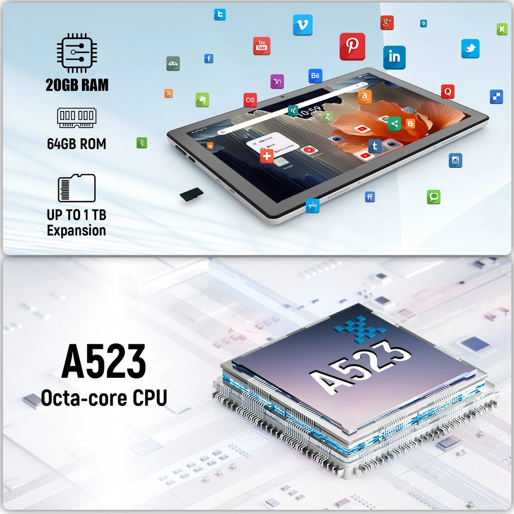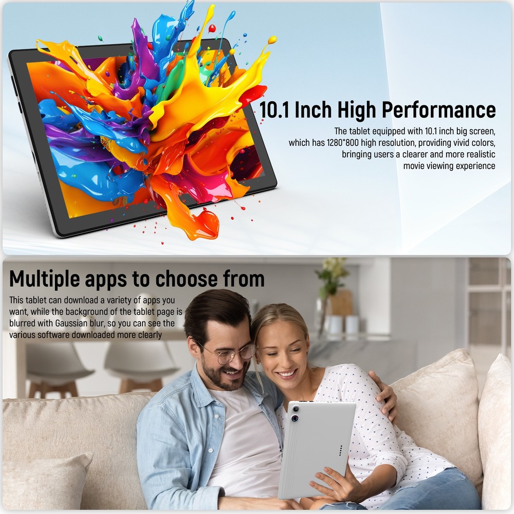 About this item 🏆【Latest Android 15 Tablet】This tablet is powered with the latest Android 15 OS2.5, which improves the tablet's performance and efficiency giving users more control over their data and personal information, and allows you to further customize your device and enhance user protection and accessibility features. Updated includes new themes, AI-generated wallpapers, safety, data privacy and improved functionality for a range of accessibility features. This makes the tablet easier and more efficient to use and a great companion to your life! 💾【20(3+17)GB+64GB+1TB Expansion+ 8-Core CPU】This Android tablet has max 20GB RAM(3GB RAM + 17GB virtual RAM) and 64GB ROM storage, it can be expanded with a micro SD cardthat allows for an expansion of 1TB of memory (SD card is not included). Tablet runs with new generation ultra-high performance and low power consumption Octa-Core 2.0GHz CPU, achieve faster and more stable running and storage speeds. With the Mail G57 graphics processor, you can play popula games/watch video with great smoothness and enjoy that without the stress of running out of storage space. 📞【WiFi 6+Bluetooth 5.3+Face Unlock】This 10 inch Android 14 tablet uses 6th generation WIFI technology, supports 5G&2.4G dual-band WiFi, which allows you to search the network quickly and freely, and provides a better network connection with lower latency, stronger signals, and faster speeds. Furthermore, the tablets support face recognition for unlocking, allowing your privacy is more privacy. Furthermore, the tablet is compatible with Widevine L1, which allows you to stream high-definition video on Netflix, Amazon Prime Video, and other platforms, with smoother and faster operation. 🎬【Widevine L1+Functional Tablet】This android tablet is compatible with Widevine L1, which allows you to stream high-definition video on Netflix, Amazon Prime Video, and other platforms, with smoother and faster operation. Besides, it is equipped with rich functions like face recognition, child protection, screen Split, make your tablet experience more convenient. A good companion for your or your kids. 🔋【Long Lasting Battery & 5MP+8MP Dual Camera】The 10 inch tablet is powered by a long-lasting, reusable 5000mAh Li-ion battery that easily gives you up to 8 hours of reading, browsing, watching movies, and playing games, giving you more time for entertainment and surfing the web. The Android 14 tablet is equipped with 8MP+5MP, which allows you to freely shoot such as people, sports, snow etc., allowing you to enjoy shooting with out this tablets. 🎁【Ideal Choice for Gifts】The tablets 10 inch with lightweight and slim design, only 9mm thin body, it is a good choice for birthday or a gift for family and friends. We provide a one-year warranty for this octa-core Android 14 tablet. If you receive any problematic products, please feel free to let us know. We will provide you with a satisfactory and professional solution within 48 hours. Go and get this 10 inch tablet.