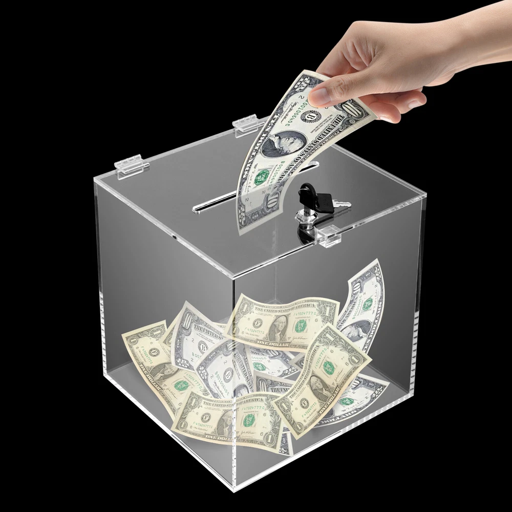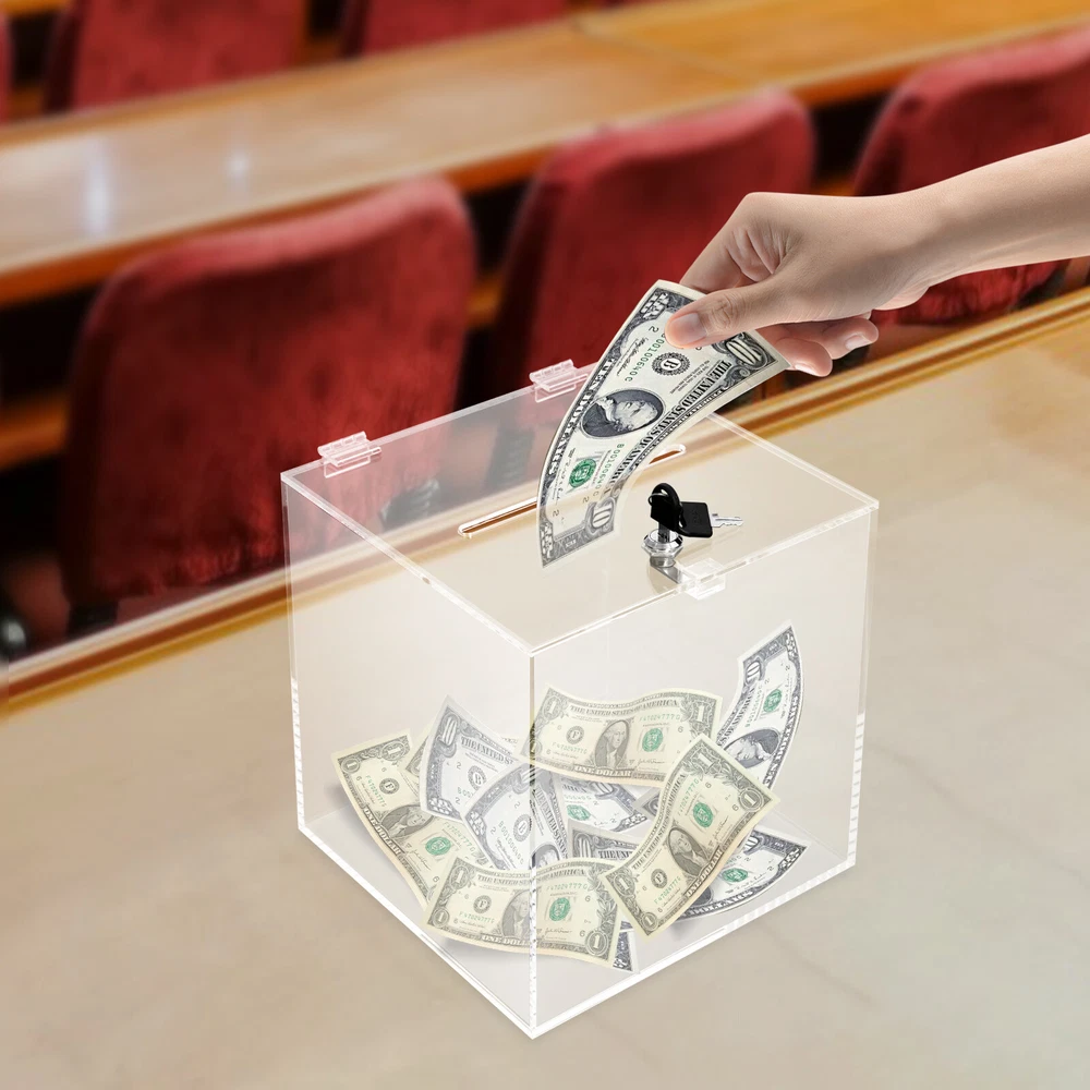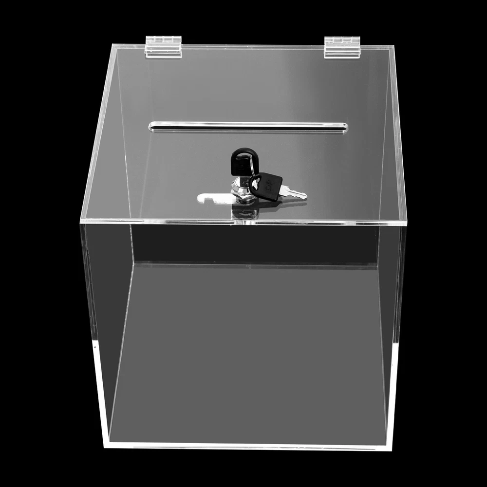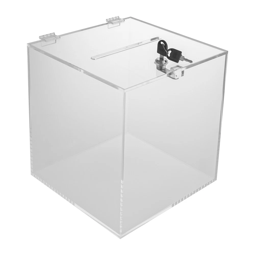 Specifications Color: Clear Material: Acrylic Process: Laser Cutting Shape: Square Style: Modern Assembly Required: No Mounting Type: Free Standing, Tabletop Load Capacity: 2kg/4.41 lbs Number of Keys: 2 Thickness: 3mm/0.12in Product Inner Size: 25.1*25.1*25.1cm/9.88*9.88*9.88in Top Slot Size: 0.8*12cm/0.31*4.72in Product Size: 25.4*25.4*25.4cm/10*10*10in Package Size: 30*30*30cm/11.81*11.81*11.81in Gross Weight: 3kg/6.61lbs Net Weight: 2.5kg/5.51lbs Package Included 1* Acrylic Donation Box 2* Keys 10*10in Acrylic Donation Box, Money Storage Container, Suggestion Box with Lock Welcome~ Description This donation box combines function and fashion. Not only does it have a stylish design, but also it has a great deal of versatility and can be used for events such as voting, fundraising, elections, and so on. This acrylic donation box is sturdy and durable and comes with a lock and two keys to ensure security. Come and buy it. Key Features Sturdy and Durable: It is made of acrylic and adopts a laser cutting process, which has high toughness and wear resistance . It is not easy to break and deform, so you can use it for a long time. Clear Design: The clear box allows everyone to observe the changes inside, ensuring that the event is conducted fairly and openly. Safe to Use: This product is equipped with a security lock, which not only protects privacy but also ensures the safety of the items in it. Easy to Clean: The simple construction and smooth surface makes it easy to clean and you just need to wipe it with a damp cloth (not included). Ready to Use: You can use this product directly after receiving it without additional installation, which saves you time and energy. Large Capacity: With a strong load-bearing capacity (4.41 lbs) and a large interior size ( 9.88*9.88*9.88 inches ) , you can feel free to put letters, cards, money, and so on into it. Compact & Portable: Its lightweight (5.51 lbs) and compact size (10*10*10in) allow it to be placed on the tabletop without taking up too much space and can be carried and stored with less effort. Thoughtful Design: The top slot with a suitable size (0.31*4.72in) is convenient for you to put in letters or cards. Protective Packaging: To prevent the product from being damaged during transportation, we packed it with bubble bags to protect your products to the maximum extent possible. Details Fully Openable Lid: The top lid can be opened fully to take out the items from the box easily. 2 Keys: The two keys make it easy for you to use one of them as a spare in case you lose it. Application This product can be used for fundraising, voting, collecting suggestions, feedback, complaint letters, and so on, as well as for storing money, postcards, cards, and so on. It can be widely used at home, office, school, shopping mall, weddings, and other occasions or places. Specifications Color: Clear Material: Acrylic Process: Laser Cutting Shape: Square Style: Modern Assembly Required: No Mounting Type: Free Standing, Tabletop Load Capacity: 2kg/4.41 lbs Number of Keys: 2 Thickness: 3mm/0.12in Product Inner Size: 25.1*25.1*25.1cm/9.88*9.88*9.88in Top Slot Size: 0.8*12cm/0.31*4.72in Product Size: 25.4*25.4*25.4cm/10*10*10in Package Size: 30*30*30cm/11.81*11.81*11.81in Gross Weight: 3kg/6.61lbs Net Weight: 2.5kg/5.51lbs Package Included 1* Acrylic Donation Box 2* Keys Notes Please confirm the dimensions before purchasing. Please note this product does not include any cards, letters, or money. Please allow the slight color difference caused by the shooting light and 1-3 cm error due to manual measurement, and make sure you do not mind before ordering. tu1 Payment Delivery details Terms of sales About us Contact us Payment We accept ebay payment 。 Fees such as import duties, taxes are not included in the item price or shipping costs. These charges are the buyer's responsibility. Delivery details Shipping: 2-9 working days to: USA Terms of sales We maintain high standards of excellence and strive for hundred percent customer satisfaction. Feedback is very important to us. We hope that you contact us immediately before you give neutral or negative feedback, so that we can address your concerns. It is impossible to address issues if we do not know about them! About us Your satis faction is our ultimate goal. We work hard to earn your trust and future business. Our certified technicians have tested each item before shipping. The unit comes with 1 year limited warranty on all manufacturing defects. a) If you receive a defective item, you may return it or ask for a discount. Please contact us within 14 days after you receive the package. b) What you returned must be intact and in its original packaging as re? u. Customer is responsible for shipping costs of the returned item. c) We will cover the cost of shipping back t with the shipping rate indicated in the registration page. We will send you a new unit or refund the full payment you paid. Thank you. Contact us Business Hour Business Hour: Monday To Friday: 8:30 AM to 5:00 PM (Beijing China time) Due to time zones, our reply to your questions may not be immediately. But within above working time, we will reply your email within 24 hours. If it's non-workdays, please kindly be patient and wait till Monday. Please contact us with ebay message. Please feel free to contact us if you have any questions. Monday To Friday: 8:30 AM to 5:00 PM (Beijing China time) Due to time zones, our reply to your questions may not be immediately. But within above working time, we will reply your email within 24 hours. If it's non-workdays, please kindly be patient and wait till Monday. Please contact us with ebay message. Please feel free to contact us if you have any questions.