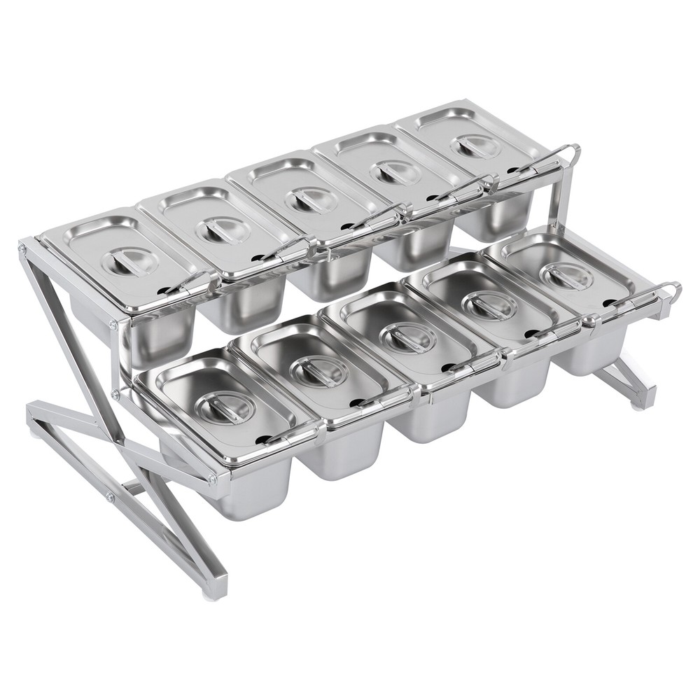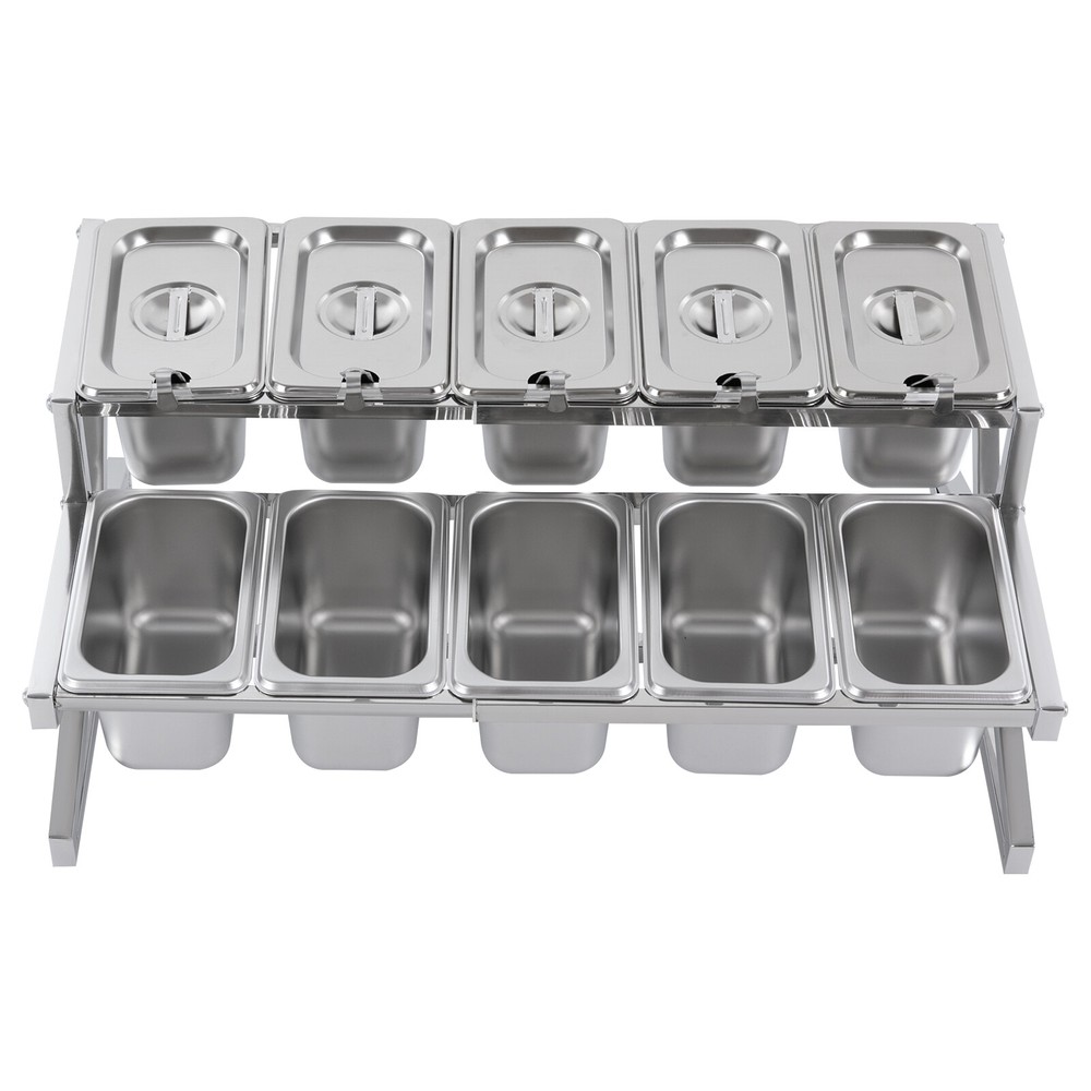 Application The products can be used to store seasonings, spices, sauces, jams, sweet soups, coffee beans, fruits, vegetables, and other food products in homes, commercial kitchens, pantries, cafes, beverage stores, restaurants, cafeterias, food trucks, and catering events. Specifications Color: Silver Style: Modern Material: 201 Stainless Steel Mount Type: Table Standing Assembly Required: Yes Number of Tiers: 2 Food Pan Quantity: 10* 1/9 Pans Load Bearing Capacity: <40kg/88.18lbs Each Pan Capacity: 1.5L/1.59qt Product Size: 35.5-65*35.5*20cm/14-25.6*14*7.9in Packaging Size: 41*31*16cm/16.14*12.2*6.3in Gross Weight: 4.3kg/9.48lbs Net Weight: 4kg/8.82lbs Package Included 1*Stainless Steel Frame 10*Pans 10*Lids 10*Ladles 1*Chinese Installation Instruction Other Needed Accessories Kitchen 2 Tier 10 Compartments Spice Rack Metal Seasoning Organizer Spice Jars Application The products can be used to store seasonings, spices, sauces, jams, sweet soups, coffee beans, fruits, vegetables, and other food products in homes, commercial kitchens, pantries, cafes, beverage stores, restaurants, cafeterias, food trucks, and catering events. Specifications Color: Silver Style: Modern Material: 201 Stainless Steel Mount Type: Table Standing Assembly Required: Yes Number of Tiers: 2 Food Pan Quantity: 10* 1/9 Pans Load Bearing Capacity: <40kg/88.18lbs Each Pan Capacity: 1.5L/1.59qt Product Size: 35.5-65*35.5*20cm/14-25.6*14*7.9in Packaging Size: 41*31*16cm/16.14*12.2*6.3in Gross Weight: 4.3kg/9.48lbs Net Weight: 4kg/8.82lbs Package Included 1*Stainless Steel Frame 10*Pans 10*Lids 10*Ladles 1*Chinese Installation Instruction Other Needed Accessories Payment Delivery details Terms of sales About us Contact us Payment We accept ebay payment 。 Fees such as import duties, taxes are not included in the item price or shipping costs. These charges are the buyer's responsibility. Delivery details Shipping: 2-9 working days to: USA Terms of sales We maintain high standards of excellence and strive for hundred percent customer satisfaction. Feedback is very important to us. We hope that you contact us immediately before you give neutral or negative feedback, so that we can address your concerns. It is impossible to address issues if we do not know about them! About us Your satis faction is our ultimate goal. We work hard to earn your trust and future business. Our certified technicians have tested each item before shipping. The unit comes with 1 year limited warranty on all manufacturing defects. a) If you receive a defective item, you may return it or ask for a discount. Please contact us within 14 days after you receive the package. b) What you returned must be intact and in its original packaging as re? u. Customer is responsible for shipping costs of the returned item. c) We will cover the cost of shipping back t with the shipping rate indicated in the registration page. We will send you a new unit or refund the full payment you paid. Thank you. Contact us Business Hour Business Hour: Monday To Friday: 8:30 AM to 5:00 PM (Beijing China time) Due to time zones, our reply to your questions may not be immediately. But within above working time, we will reply your email within 24 hours. If it's non-workdays, please kindly be patient and wait till Monday. Please contact us with ebay message. Please feel free to contact us if you have any questions. Monday To Friday: 8:30 AM to 5:00 PM (Beijing China time) Due to time zones, our reply to your questions may not be immediately. But within above working time, we will reply your email within 24 hours. If it's non-workdays, please kindly be patient and wait till Monday. Please contact us with ebay message. Please feel free to contact us if you have any questions.