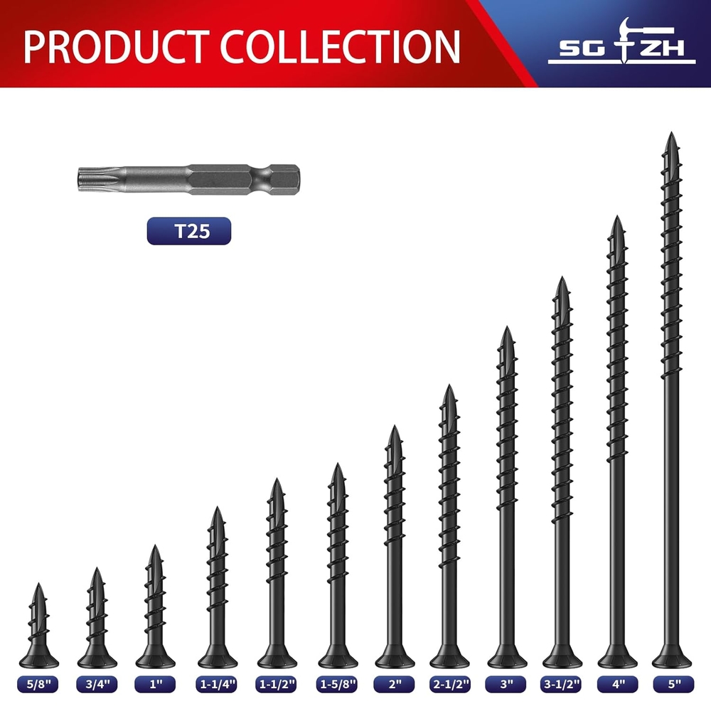 Store New Arrivals Add to Favorite View Feedback Contact #10 X 5 Inch Deck Screws (246Pcs) 6Lb. Exterior Wood Screws. Carbon Steel, Black, Flat Head, Rust Resistant Epoxy Coated, with T25 Star Bit Description Number of Items 6 Color Black Material Carbon Steel Drive System Torx Thread Size #10 Head Style Flat Exterior Finish Rust Resistant epoxy coated Package Dimensions 6 x 3 x 3 inches; 6 Pounds Size #10 x 5" RUGGED AND DURABLE - SG TZH Outdoor Wood Screws made of Thickened rod by, high quality low carbon alloy steel special heat treatment process,which has higher corrosion resistance and anti-rust effect than ordinary screws, longer service life, not easy to damage, more solid, excellent mechanical properti. EXQUISITE CRAFTSMANSHIP - This Deck Screws diameter: #10, length: 5inch, excellent craftsmanship makes our T25 star drive style, not slippery, fast, not easy to break, high strength, not easy to deform, not eccentric. Anti-corrosion coating - 1000-hours salt spray test, 4-layer coating provides superior protection against rust and corrosion the screws less prone to rust in outdoor construction Torx/star Drive - Torx/star drive make installation easier, save drive torque and further fasten screws into wood construction, eliminate loose or camout. Value Package, Easy to Use - This Deck Screw pack comes in approximately 246 pieces and comes with 2 T25 Star bits. They are suitable for various indoor and outdoor scenarios. Product Description ABOUT US We offer the best prices around on high quality products. Our E-store includes media such as books, movies, music and games while offering electronics, toys, sporting apparel, clothing, tools, general home, garden items and more. SHIPPING We are always working hard to ensure your package arrives as soon as possible. Please understand that some factors like weather, high postal traffic, and the performance of shipping companies are outside of our control. We offer free shipping to the lower 48 states and ship within 2 business days of payment, usually sooner. We do not accept P.O. Boxes. Please provide a physical address. For shipping outside of the continental USA, we only use eBay's Global Shipping Program.The item is shipped to KY and then sent to the rest of the world. International customers are responsible for all duties and taxes. Continue to check out in order to calculate costs for shipping the item to your country. Messages regarding eBay's Global Shipping Program MUST be directed at eBay EXCLUSIVELY. RETURNS We offer a 30-Day Return Policy on items which you are not completely satisfied with. You have the option for a full-refund or an exchange of the item. No returns are available on items shipped outside of the USA. PAYMENT We accept PayPal. CONTACT US This page content is yet to come Please ad us to your favorite seller and visit again later Thank You CUSTOMER SATISFACTION We try our very best to make sure every customer is completely satisfied. If there's a problem, message us! We're happy to help. WE ACCEPT Copyright © 2021 AutoDS. | All Rights Reserved