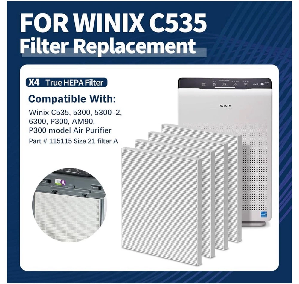 115115 HEPA Filter Replacement A Size 21 For PlasmaWave Air Purifier (4-Pack)