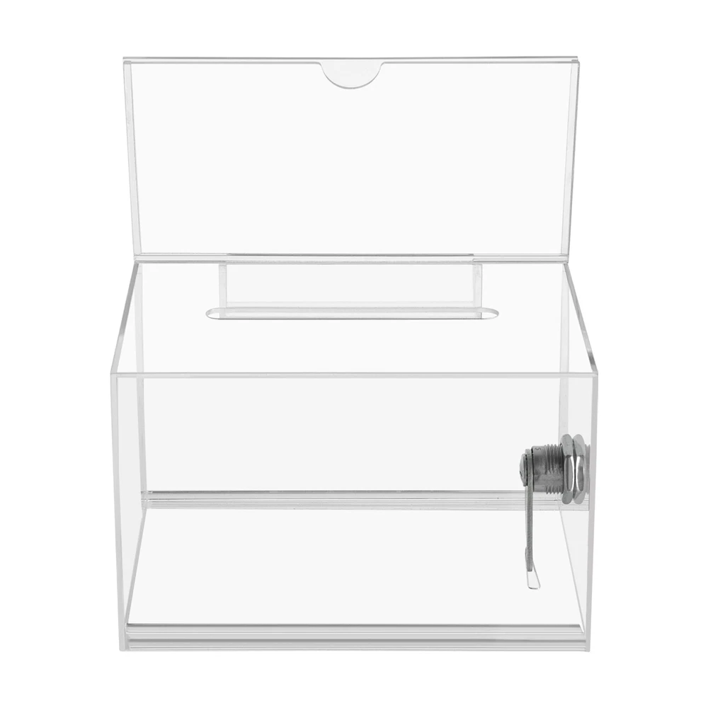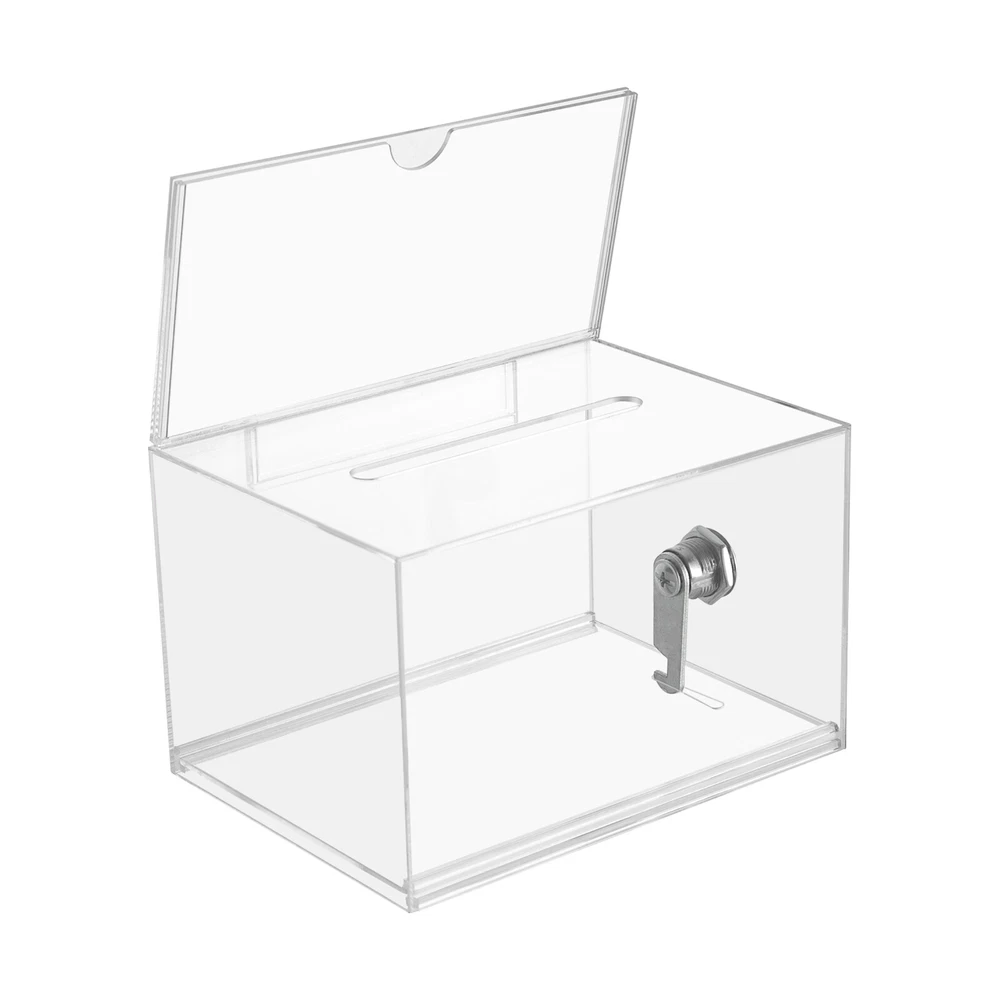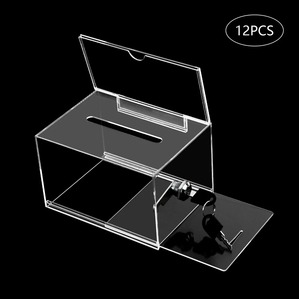 Description Voting or fundraising activities are right in front of you, but do you lack practical voting boxes? Take a look at our highly transparent acrylic ballot box! Each box comes with a lock and two keys, which can help you organize more professional voting and fundraising activities while ensuring fairness and trust. Key Features High-quality and Durable: It is made of high-quality acrylic with a laser cutting process, which has high tenacity and is not easy to break and deform. Suitable Size: The external size of 6.3*4*4.5 inches provides sufficient space to accommodate items like coins and coupons while only taking a small footprint, making it a very suitable size. Visible Design: The high-transparency acrylic provides excellent visibility to the items inside, you can use it as 12PCS Acrylic Suggestion Boxes Clear Acrylic Donation Box Ballot Box with Lock Description~ Description Voting or fundraising activities are right in front of you, but do you lack practical voting boxes? Take a look at our highly transparent acrylic ballot box! Each box comes with a lock and two keys, which can help you organize more professional voting and fundraising activities while ensuring fairness and trust. Key Features High-quality and Durable: It is made of high-quality acrylic with a laser cutting process, which has high tenacity and is not easy to break and deform. Suitable Size: The external size of 6.3*4*4.5 inches provides sufficient space to accommodate items like coins and coupons while only taking a small footprint, making it a very suitable size. Visible Design: The high-transparency acrylic provides excellent visibility to the items inside, you can use it as a ballot box to ensure justice or as a charity box to showcase the love from people. Good Protection: Each box has a lock with 2 keys that can prevent the loss of internal items and also provide convenience for you to take out internal items. 12Pcs a Set: This set includes twelve ballot boxes, so you don't need to purchase them repeatedly, greatly saving time and energy. Good Helper: With the help of this ballot box, you can easily accept the opinions of employees or customers and solve existing problems promptly, which is conducive to improving your image and providing better services for them. Easy to Use: After receiving the package, you only need to insert the board and label plate to start using it, which is simple and convenient. Easy to Clean: This product has a smooth surface and simple structure, so it reduces the difficulty of cleaning. You only need to use a towel to remove the dust on it. Details Label Plate: You can insert paper with voting or donation promote information into it without the need for glue. The curved groove design makes it more convenient for you to take out the paper from the label plate. Slot: You can easily put the ballot papers into the box through the slot on top, which is very convenient and fast. Application It is suitable for restaurants, companies, churches, coffee shops, hotels, salons, bars, proms, parties, marketing promotions, tradeshows, exhibitions, etc., to accommodate donations, ticket comments, suggestions, coupons, ballots, notes, coins, business cards, and tips. Specification Color: Clear Style: Modern Lock Type: Key Material: Acrylic Process: Laser Cutting Shape: Rectangular Assembly Required: Yes Mounting Type: Tabletop Thickness: 2mm/0.08in, 3mm/0.12in Label Plate Size: 16*10cm/6.3*4in Product Size: 16*10*11.5cm/6.3*4*4.5in Internal Size: 15.4*9.4*10.5cm/6.06*3.7*4.13in Ballot Slot Size: 10.5*1cm/4.13*0.39in Package Size: 35*30*30cm/13.78*11.81*11.81in Gross Weight: 5kg/11.02lbs Package Included 12* Ballot Boxes 12Set* Keys Notes Please understand that ballot papers, tickets, cards, etc. are not included. Please allow the slight color difference caused by the shooting light and 1-3cm error due to manual measurement, and make sure you do not mind before ordering. Payment Delivery details Terms of sales About us Contact us Payment We accept ebay payment 。 Fees such as import duties, taxes are not included in the item price or shipping costs. These charges are the buyer's responsibility. Delivery details Shipping: 2-9 working days to: USA Terms of sales We maintain high standards of excellence and strive for hundred percent customer satisfaction. Feedback is very important to us. We hope that you contact us immediately before you give neutral or negative feedback, so that we can address your concerns. It is impossible to address issues if we do not know about them! About us Your satis faction is our ultimate goal. We work hard to earn your trust and future business. Our certified technicians have tested each item before shipping. The unit comes with 1 year limited warranty on all manufacturing defects. a) If you receive a defective item, you may return it or ask for a discount. Please contact us within 14 days after you receive the package. b) What you returned must be intact and in its original packaging as re? u. Customer is responsible for shipping costs of the returned item. c) We will cover the cost of shipping back t with the shipping rate indicated in the registration page. We will send you a new unit or refund the full payment you paid. Thank you. Contact us Business Hour Business Hour: Monday To Friday: 8:30 AM to 5:00 PM (Beijing China time) Due to time zones, our reply to your questions may not be immediately. But within above working time, we will reply your email within 24 hours. If it's non-workdays, please kindly be patient and wait till Monday. Please contact us with ebay message. Please feel free to contact us if you have any questions. Monday To Friday: 8:30 AM to 5:00 PM (Beijing China time) Due to time zones, our reply to your questions may not be immediately. But within above working time, we will reply your email within 24 hours. If it's non-workdays, please kindly be patient and wait till Monday. Please contact us with ebay message. Please feel free to contac