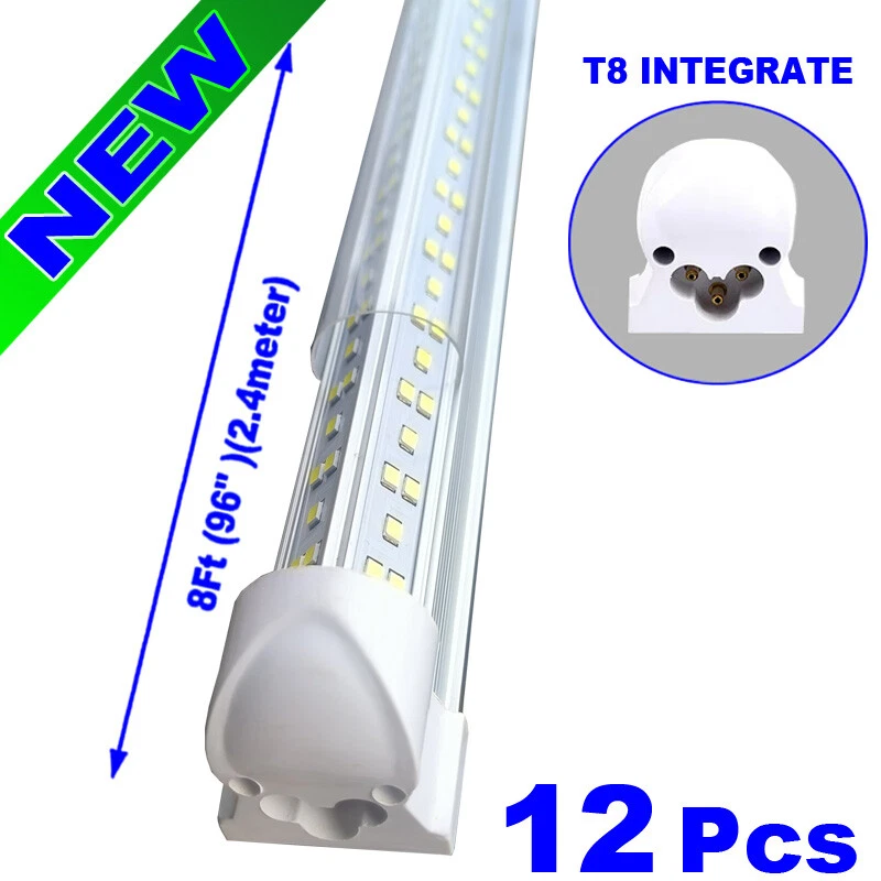 FAST DELIVERY - Ship from New Jersey or Los Angeles Warehouse via FedEx , 3-7 Days Delivered Your Door . SCIENTIFIC DESIGN - 8Ft LED Shop Lights Fixture is Made of 6500K Cold White SMD2835 LED Chip ,Plastic Clear Cover , Aluminum Bracket Housing ,and AC85-277V Constant Current Driver . It can work in -68F to 120F Temperature Conditions EASY INSTALLATION - The Integrated Tube Fixture Can be Install on Wall or Ceiling ,Easily Replace Traditional Fluorescent Tube Bulb . Plug and Play , Free Accessories (Power Cords, Connector , Extension Cords , Clip and Screw ) Come with Tube Lights Together WIDE APPLICATION - Linkable 8Ft Bulbs Widely Used in Garage Ceiling , Barbershop , Schools, Hospitals Basement , Factory Warehouses , Supermarkets Cooler Door , Offices, Shops,Hotels, etc 12-Pack 8ft LED Shop Light 144W Linkable Ceiling Tube Fixture Daylight 6500K FAST DELIVERY - Ship from New Jersey or Los Angeles Warehouse via FedEx , 3-7 Days Delivered Your Door . SCIENTIFIC DESIGN - 8Ft LED Shop Lights Fixture is Made of 6500K Cold White SMD2835 LED Chip ,Plastic Clear Cover , Aluminum Bracket Housing ,and AC85-277V Constant Current Driver . It can work in -68F to 120F Temperature Conditions EASY INSTALLATION - The Integrated Tube Fixture Can be Install on Wall or Ceiling ,Easily Replace Traditional Fluorescent Tube Bulb . Plug and Play , Free Accessories (Power Cords, Connector , Extension Cords , Clip and Screw ) Come with Tube Lights Together WIDE APPLICATION - Linkable 8Ft Bulbs Widely Used in Garage Ceiling , Barbershop , Schools, Hospitals Basement , Factory Warehouses , Supermarkets Cooler Door , Offices, Shops,Hotels, etc