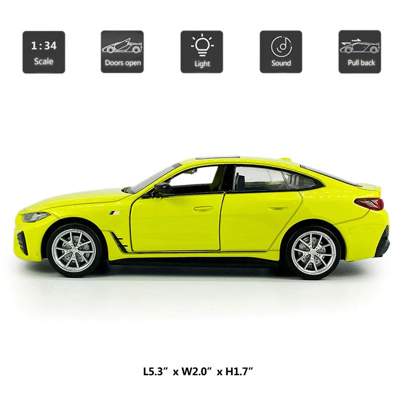 1:34 2022 BMW i4 M50 EV Model Car Diecast Toy Vehicle Toys for Kids Boys Gift Item Type Diecast & Toy Vehicles Scale 1:34 Material Diecast and ABS Color Yellow and green Dimension About L5.3" x W2.0" x H1.7" (L13.5 x W5.0 x H4.4 cm) Vehicle Type Coupe Vehicle Year 2022 Function *Pull back *Two doors can be open *Press the car or open the door, it will make sound and light Packing Packed in original color box, in excellent condition Power 3 x AG13/LR44 button cell, power is just for light and sound Tips *Great choice of gift for kids, especially for Birthday, Christmas and New Year Gift *Great item for collector, business gift, home decoration, office decoration, display Warning Don't put in mouth/Keep Away from Fire/Not for Children under 3 Years Notice Due to manual measurement, please allow a little error Package include 1 x 1:34 Scale BMW i4 M50 Model Car (Batteries Not Included) Payment Delivery details Terms of sales Payment We accept paypal only. Delivery details We ship orders within 24 hours upon receipt of payment. Terms of sales We provide great products and service. If you have any problems with the order,please do contact us before leaving negative feedback and opening case on eBay.