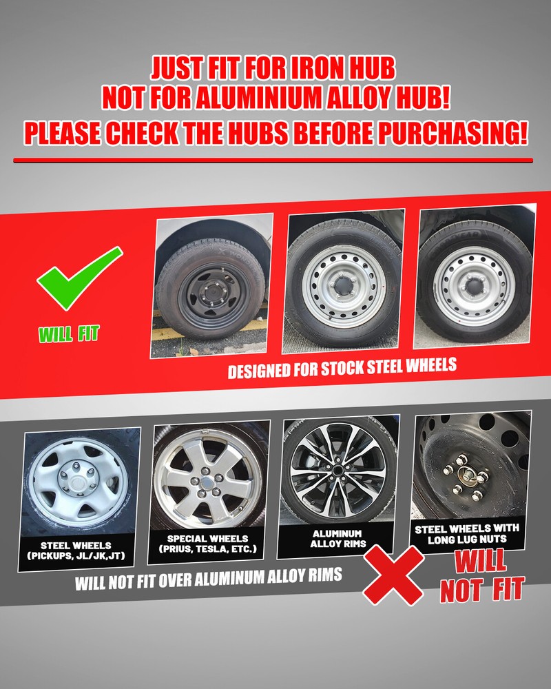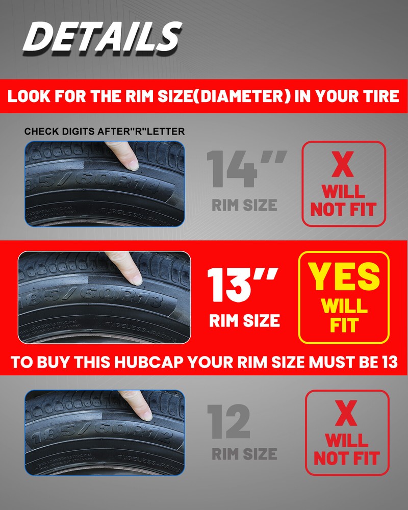 Store Categories Other Car Refrigerator Front Bumper Rear Bumper Fender Flares Inner Fenders Side Steps Running Board A-Pillar Light Mount Brackets Headlights Taillights Fog Lights LED Headlights LED Taillights LED Fog Lights Jeep Chevrolet Ford Toyota Dodge GMC About This Item ❗❗ PERFECT FIT: This wheel hub cap is specifically designed to perfectly fit for 13-inch wheels, ensuring a seamless match and enhanced aesthetics. It complements the overall design of the vehicle, elevating its visual appeal. ❗❗ HIGH-QUALITY MATERIAL: Constructed from high-quality materials, this wheel hub cap guarantees durability and longevity. It withstands various road conditions and environmental factors encountered during daily driving, maintaining its pristine condition. ❗❗ EASY INSTALLATION: Installing this wheel hub cap is a breeze and requires no specialized tools or modifications. It comes with a user-friendly system, allowing for a hassle-free installation process by following the provided instructions. ❗❗ PROTECTIVE FUNCTION: Besides its aesthetic appeal, this wheel hub cap serves as a protective barrier for the wheels. It prevents scratches and potential damage caused by stones, debris, or other objects, safeguarding the wheel's surface. ❗❗ AFTER-SALES SERVICE: If There Is a Loss of Product Parts, or Any Parts of The Problem, We Can Provide After-Sales Service, Please Contact Us on The Order Page. Product Specificataion ❗❗ Type: Hub caps ❗❗ Number in Pack: 4 ❗❗ Color: Black and Silver Lacquer ❗❗ Material: ABS ❗❗ Compatible Wheel Diameter: 13 in ❗❗ Finish: Glossy ❗❗ Installation Type: Snap-On ❗❗ Model: Universal Hubcap for Iron Wheels , Not fit for 1988-91 Honda Civic H-back/Sedan 13 Inch Steel Wheel Package List ❗❗ 1 Set of 4 Hub caps and 4 retention rings Payment Delivery details Terms of sales About us Contact us Payment We accept PayPal, credit card , Apple Pay & Google Pay etc. Delivery details All items will be shipped within 1-3 business days after payment received, we will try our best to ship out as soon as we can, hope for your understanding. Please double confirm your address and contact information, which will help the delivery faster and more accurately. Note :buyers who purchase international products need to pay import tariffs!!! Terms of sales Professional installation is highly recommended. Any problem of the item please feel free to contact us first , please D o Not leave negative feedback before that, or simply return it within 60 Days in original condition. We will resolve it for you ASAP. About us Any questions please do not hesitate to contact us directly by eBay message . We will reply you within 24 hours asap, thanks for your understanding. Contact us Should you have any problem or require any further information please feel free to contact us . If you are satisfied with our product and service, please kindly leave us a positive feedback. Popular Categories On Mar 15, 2025 at 08:05:38 PDT, seller added the following information: