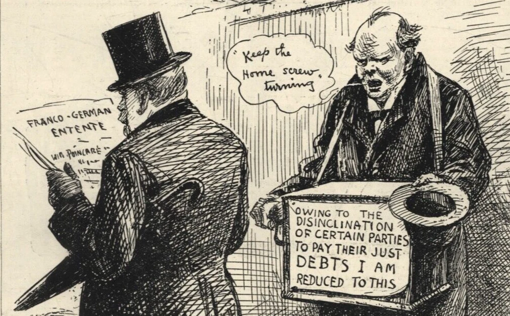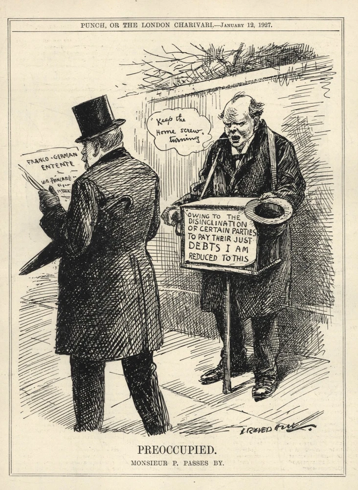 1927 British Cartoon: CHURCHILL French War Debts POINCARE Franco-German Entente