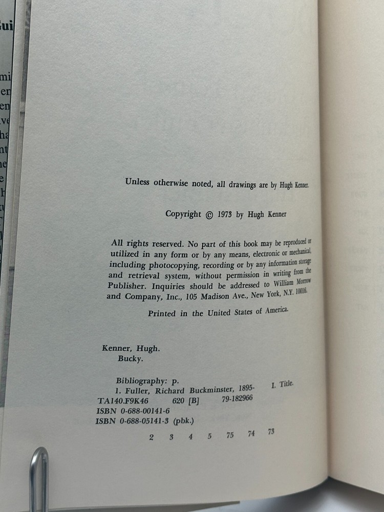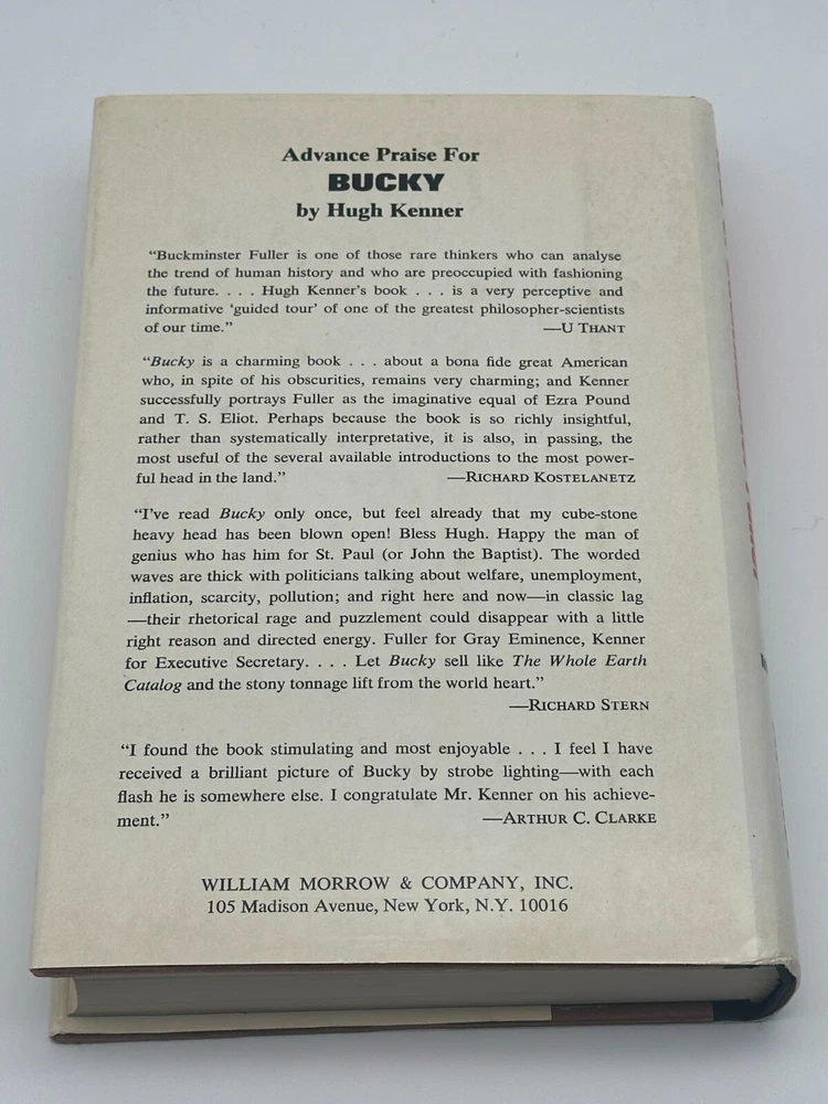Genre: Architecture Type: Hardcover Language: English Edition: First Edition gtin13: 0688001416 Format: Hardcover Publication Year: 1973 Features: Dust Jacket, Illustrated Book Title: Bucky : a Guided Tour of Buckminster Fuller Era: 1970s Vintage: Yes Personalized: No Inscribed: No Publisher: William Morrow & Company, Inc. Intended Audience: Ages 9-12, Young Adults, Adults Narrative Type: Nonfiction Author: Hugh Kenner Topic: Buckminster Fuller Personalize: No Country of Origin: United States Original Language: English ISBN: 0688001416 Ex Libris: No Illustrator: Hugh Kenner Signed: No