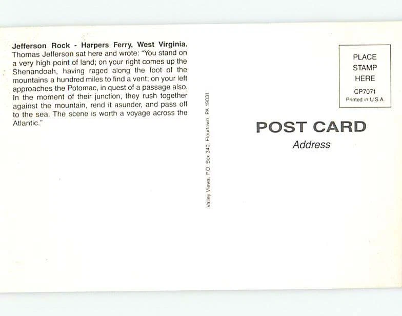 1980's JEFFERSON ROCK Harpers Ferry West Virginia WV 11/8 AD2928