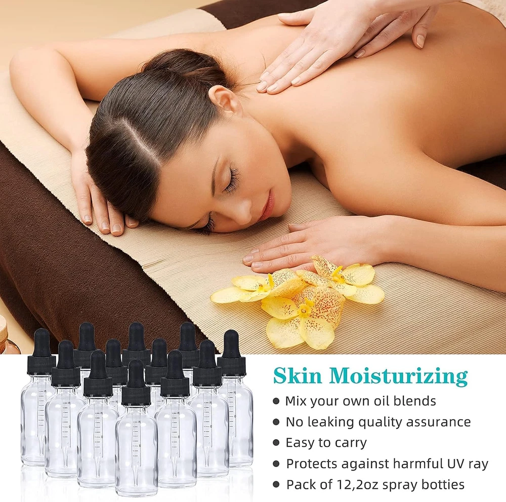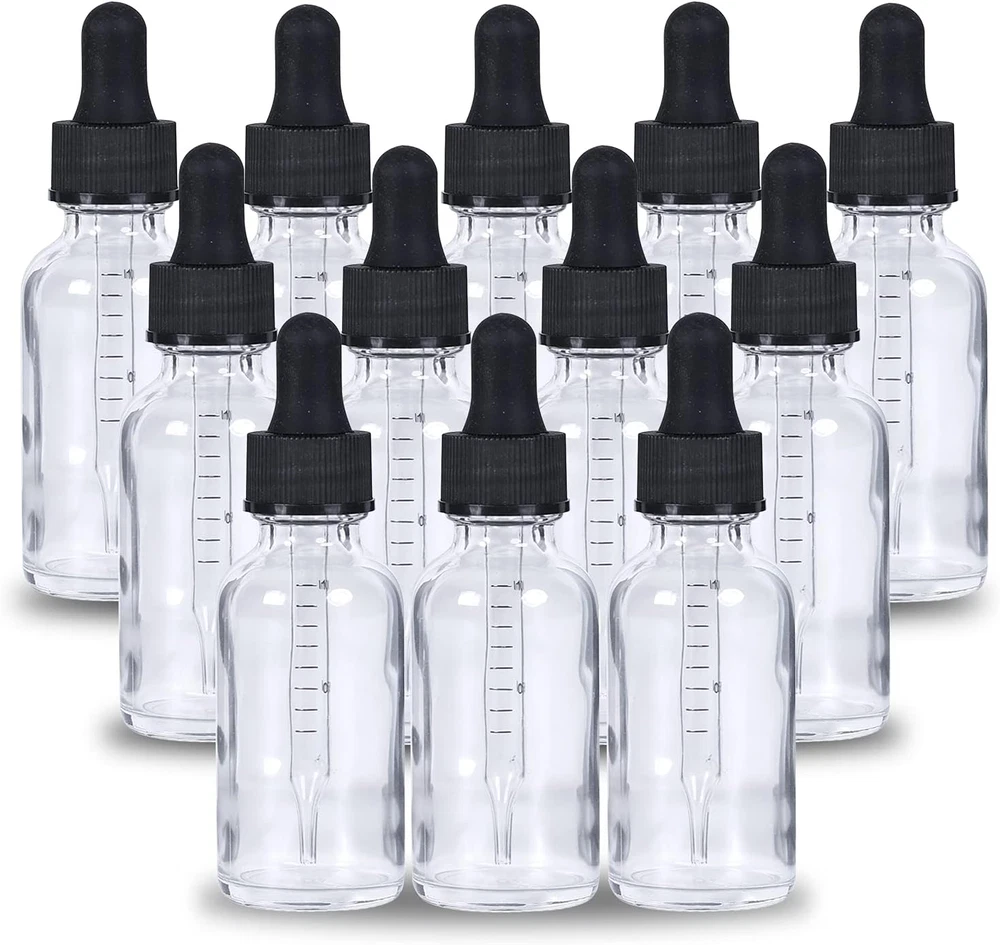 Value Eye Droppers Set: 12 pack 2oz (60ml) clear glass eye dropper bottles. Bottles are packaged in grid-shaped partition and thick carton boxes to prevent damage to transport UV Resistaant: The glass bottle is made of corrosion-resistant amber glass and will effectively filter out harmful ultraviolet rays. each with quality tapered-tip glass droppers, and thicker to prevent breaking easily. Our Bottle is BPA free and lead-free, non-toxic and odorless, with good stability, and can withstand most acid-base erosion Secure & Leak-Proof: The screw thread finish bottle mouth is matched with a black cap, which fits tightly and can effectively prevent any liquid leakage, dropper bottle can be used to dispense liquid, easy to carry out Multi Uses: Great for DIY essential oils, colognes, tinctures, cosmetics, perfume oils, beard oil, hair oil, or other liquids. The eye droppers allow for the perfect amount of product to be used every time. The convenient size makes it perfect for travel in bags as the Leak-Proof covers. You can travel with liquids for daily eye, face, and body care Easy to Use: The dropper holder is made of rubber that conveniently enables you to fill in essential oils and make your own essential oil blends for massage, hair salon, aromatherapy, and enjoys your precious relaxing moments Product Description YONKAN Glass Dropper Bottles Why Choose Our Glass Dropper Bottle Set? High-quality thick glass protects contents from the effects of UV light. Popular for essential oils and massage oils. Capacity ---- 1Oz; 2Oz; Color ---- Black; Amber; Clear Boston Round Glass Dropper Four Packaging Specifications Our glass dropper bottles are the perfect size for travel and fit easily into handbags and backpacks. With an anti-corrosion plastic cover, you can apply just the right amount every time. Versatile and convenient, these 2-ounce dropper bottles can be used as essential oil bottles, body bottles, whether you're looking to bottle your own herbal remedies, store your own distilled essential oils or create luxurious massage oils to use, are ideal choices ... 2 Pieces ---- Amber Droppers; Clear Droppers; Black Droppers; 6 Pieces ---- Amber Droppers; Clear Droppers; Black Droppers; 12 Pieces ---- Amber Droppers; Clear Droppers; Black Droppers; 24 Pieces ---- Amber Droppers; Clear Droppers; Black Droppers; 48 Pieces ---- Amber Droppers; Clear Droppers; Black Droppers; High Quality Glass Strong thick glass, BPA-free glass, the bottle mouth is very smooth that does not hurt you when using it Thick Plastic Lids Corrosion-resistant silicone tops, longer service life Safe Package Perfect packaging glass bottles are packaged in the grid-shaped partition and thick carton boxes to reduce damage to transport