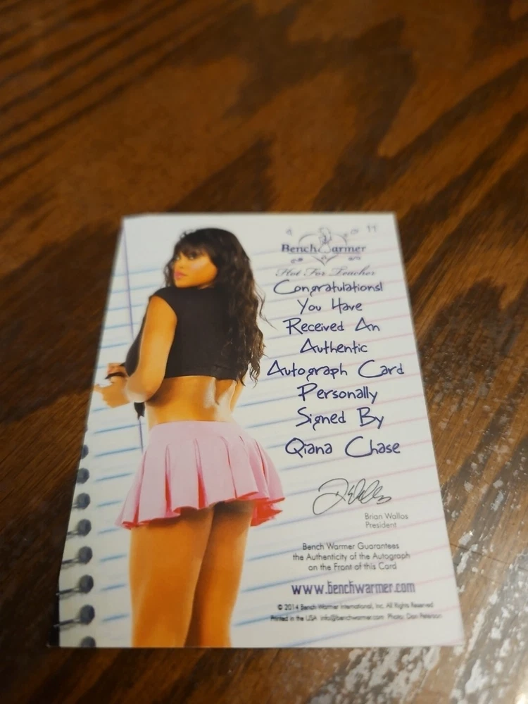 2014 Benchwarmer Hot For Teacher Autograph Gold Foil Card Qiana Chase #11 Auto Playboy Tall (5'9"), busty and luscious stunner Qiana Chanel Chase was born on February 12, 1981, in Los Angeles, California. The exceptionally leggy and statuesque beauty first began modeling in her early 20s. Qiana was featured in two "Playboy" newsstand special editions prior to becoming the Playmate of the Month in the July 2005 issue of the famous men's magazine. Chase went on to appear in a couple of "Playboy" videos. She appears in the music video "P.I.M.P." by rap artist 50 Cent and was featured in the 2005 Lingerie Bowl. Moreover, Qiana has small acting roles in Epic Movie (2007) and Funny People (2009) and popped up as herself on the reality TV series The Girls Next Door (2005) . Outside of modeling, Chase is also a professional make-up artist who enjoys dancing in her spare time. Please, look at all the pictures. Please check out my other eBay accounts... https://www.ebay.com/usr/kimmyrael https://www.ebay.com/usr/matlac99 https://www.ebay.com/usr/lacr6837 https://www.ebay.com/usr/malac9440 https://www.ebay.com/usr/lacr_3567 https://www.ebay.com/usr/lacroki8 https://www.ebay.com/usr/lacroki9 Shipping only to the continental US unless you contact me first. Will combine shipping!!!