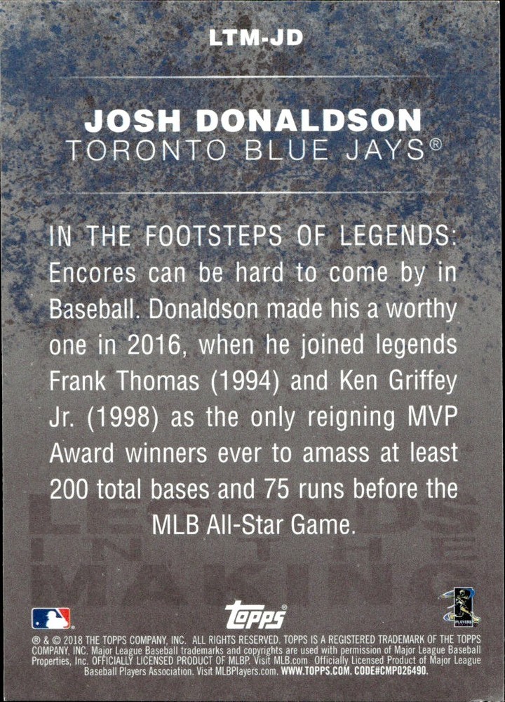 2018 Topps Legends in the Making Blue Josh Donaldson Toronto Blue Jays #LTM-JD