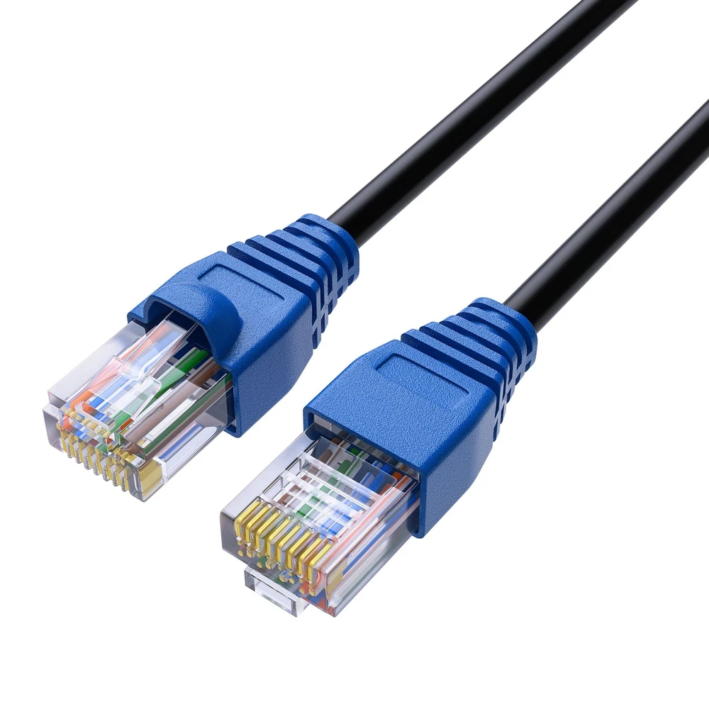 Cat5e Outdoor Ethernet Cable Suitable for outdoor, home, office, and server. You can choose different lengths as needed(25 feet to 250 feet). Product Features HDPE Insulation and Cross Spline to avoid signal interference. UV Resistant LLDPE Jacket and PVC inner Jacket can be directly buried underground. 24 AWG CCA Conductors with RJ45 connectors and gold-plated contacts to optimized signal quality. HIGH SPEED DATA TRANSMISSION: Cat5e cable supports Lag-free data transmission speed of up to 1.0Gpbs, which is the same as Cat6 and more flexible and easy to lay. Bandwidth of up to 350MHz. 4 pairs of unshielded twisted pairs are wrapped with HDPE Insulation to avoid signal interference. Backwards compatible with Cat 5 / Cat5. DOUBLE JACKET: Our Cat 5e outdoor/indoor cable features UV Resistant LLDPE weather jacket and PVC inner jacket to provide double-layer protection to achieve the effects of high temperature resistance, Moisture proof and cold resistance. This Cat5e internet cable has a long service life and suitable for installation in wall, underground and directly buried. HIGH-QUALITY CONTROL: Our cables features 8/24AWG copper clad aluminum (CCA) solid conductors with RJ45 connectors and gold-plated contacts to optimized signal quality. Snagless cable boot provides strain relief and protects the connector. The Included 25 pcs cable ties help keep this CAT5e cable in an organized manner, no tangling worries and effectively prolong the service life. WIDE APPLICABILITY: ethernet LAN cat5e cables come in length from 25 feet to 250 feet. Our cat5e ethernet patch cable suitable for outdoor, home, office and server. It is compatible with routers, switches, printers, laptops, computers, POE cameras, gaming consoles, modems, scanners, televisions, POE VoIP Phones, network switches, etc. RELIABLE SERVICE: We hope this product can create a perfect experience for you and offer a one-year warranty for this cable. If you have any questions about our products, you can contact us at any time, and our customer service will reply within 24 hours.