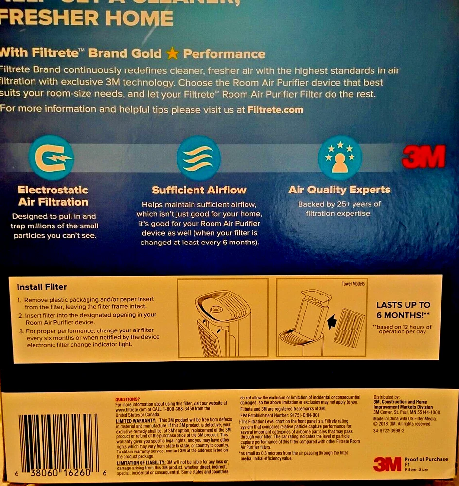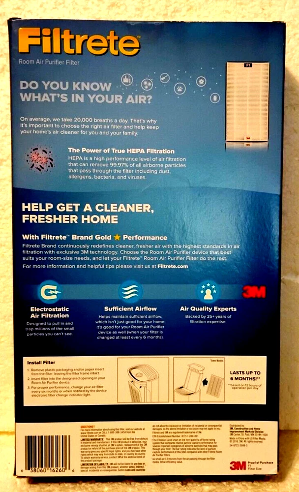 3M FILTRETE F1 ADVANCED ALLERGEN, BACTERIA & VIRUS ~ ROOM AIR PURIFIER ~ C01/T02 The 3M Filtrete F1 Advanced Allergen, Bacteria & Virus Room Air Purifier is a white HEPA-type filter with a MERV rating of 12, designed for capturing allergens in indoor air. Manufactured in 2018, it has a filter life of 6 months and features dust and abrasion resistance. The filter is 1 3/4 inches deep and suitable for use in air purifiers. The model number is FAPF-F1-A, and it is made of microfiber filter media. Energy Star compliant, this filter is designed to remove contaminants effectively from the air, providing a cleaner and healthier environment. New in Box Remember that the actual color of any item may vary slightly due to lighting and monitor settings. If you have any questions or concerns about a specific product, feel free to reach out to us before making a purchase. We are committed to providing prompt responses and ensuring a positive shopping experience. Penny_Pinching_Jewelry is an online store that specializes in a variety of items, including: Handmade Dangle & Stud Earrings: These earrings come in various styles, colors, and designs. From elegant to whimsical, there’s something for everyone. Window Jewelry: Discover our exquisite collection of Suncatchers . These captivating pieces come in various styles, colors, and designs. From elegant to whimsical, they add a touch of magic to any window. Explore the beauty of sunlight dancing through these enchanting creations! Kitchen Towels, Hot Pads, and Mitts: Practical and stylish kitchen essentials to add a touch of charm to your cooking space. Tablecloths: Whether you’re hosting a special occasion or want to elevate your everyday dining, the tablecloths are worth exploring. Figurines and Collectibles: For those who appreciate unique and collectible pieces. China: We also offer beautiful china, individual pieces. Art & Craft Items: We have things for the do-it-yourself customers too. Health & Beauty items: From cough medicine to eye shadows, skin care, & Deodorant’s. We may not carry all there is but, come check us out! Toys: Lego’s, Stuffed Animals, Coloring Books, Playing Cards, Chalk, and other items. Thank you for choosing Penny_Pinching_Jewelry! 🌟🛍️
