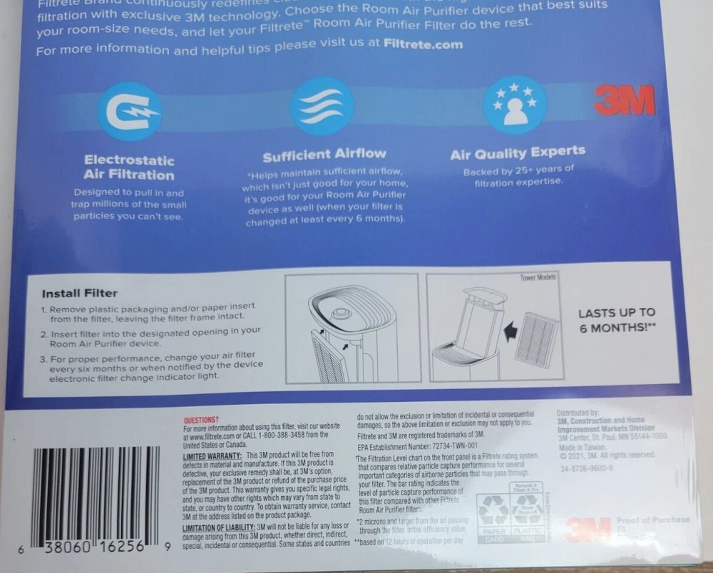 The 3M Filtrete Allergen Reduction F1 Room Air Purifier Hepa Type Filter is a white filter with a MERV rating of 12, designed for a 20 mm item diameter air purifier manufactured in 2021. It features HEPA-Type filtration technology and has a filter life of 6 months. The pleated filter is designed for a unit with dimensions of 6.75inches in length, 12 inches in height, and 1 3/4 inches in width, with a depth of 5 cm. The model number is A/D/H and the brand is Filtrete. Thank you for viewing this listing. Please reach out to us directly if you have any questions you may have. Please Check out my Other Items. Note that we offer free, no question asked returns for up to 30 days after purchase. If you're not happy with the item for any reason after purchasing, simply open a return, send it back for free, and we will refund your money in full. Thanks, and have a great day!