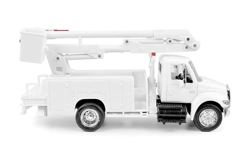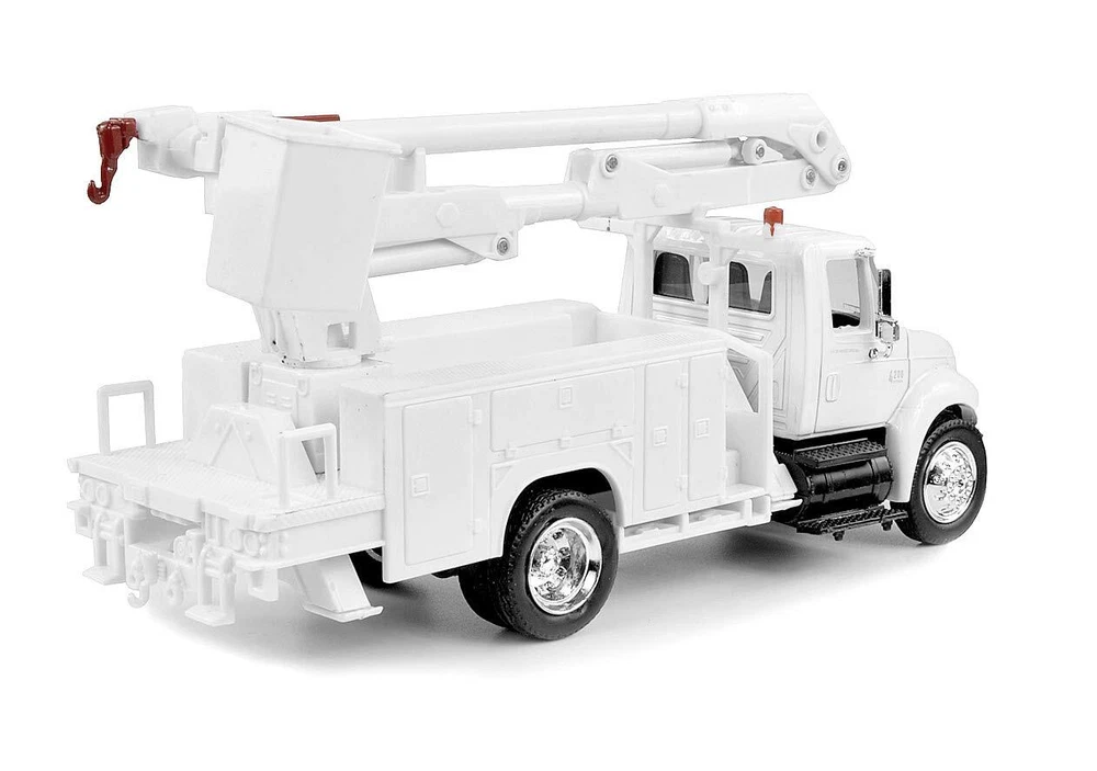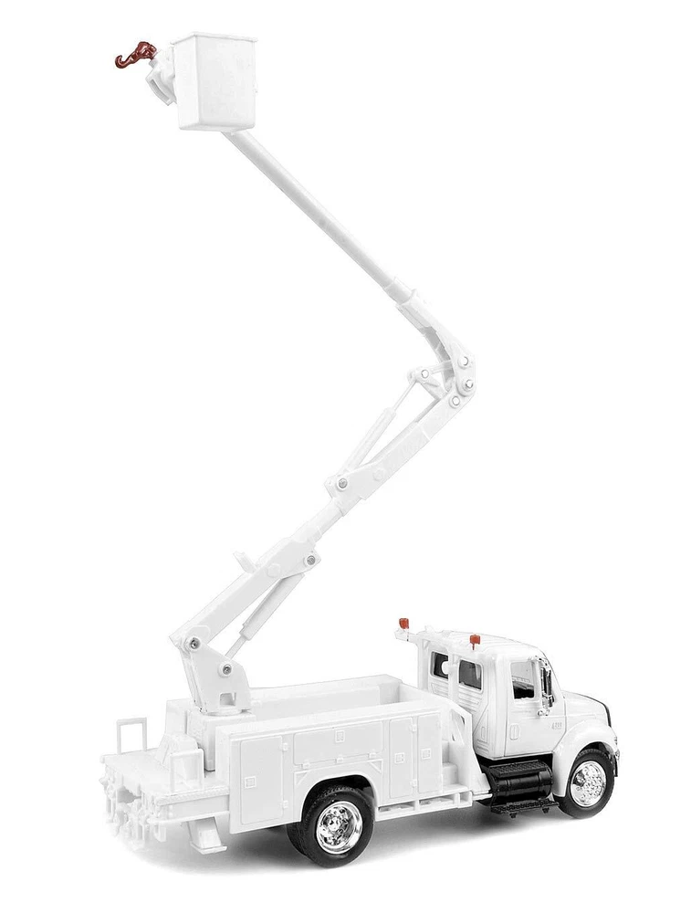 This is an 4200 line maintenance truck model at 1/43 scale model. It measures approximately 7.5” long x 2.25” wide x 3.75” high. The cab is die-cast metal. The frame, arm and details are made of plastic. There is articulation on the arm and bucket. The arm and bucket can rotate.The wheels are made of rubber and can roll freely and smoothly; so be mindful of where to display this model or it could roll away. This model comes in an individual window box. This makes a nice display, from the photos you can see that it is as nice/detailed as the larger 1/32 scale model. The only difference is that smaller scale model takes less space to display. Please keep in mind that these models are mainly for display/decoration and are not toys. They are fragile and will not withstand been played with. Realistic collectible model Diecast metal and plastic construction Accurate paint scheme and markings 1/43 scale length: 7.5 inches, width: 2.25 inches