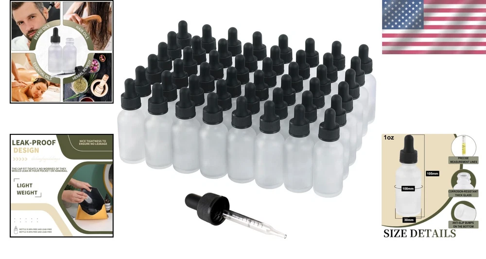 48 Pack Glass Dropper Bottles with Silicone Tops - Ideal for Oils & Tinctures ‹ › ‹ › ‹ › ‹ › ‹ › ‹ › ‹ › ‹ › ‹ › 48 Pack Glass Dropper Bottles with Silicone Tops Ideal for Oils & Tinctures Features: Upgraded precise measurement lines with a capacity of 1 ml, clear glass for easy visibility, and clearly marked scales for accuracy. Leaking-proof design ensures the bottle mouth won't fall off, and the cap fits tightly to avoid any leaks in your pocket or handbag. Made from corrosion-resistant glass and silicone tops that do not absorb flavors and shelter photosensitive compounds from UV rays. Versatile use for filling essential oils, colognes, tinctures, and more - perfect for massage, beauty shop, salon, and aromatherapy practices. Safe packaging in a grid-shaped surround and thick upgraded carton box to prevent damage during transport. Benefits: Durable and reusable glass, with a smooth surface, lightweight for easy travel. Efficient suction for minimizing waste of your precious oils. Safe and secure design for daily use in beauty and self-care routines. Why Choose Our Glass Dropper Bottles? Transform your liquid dispensing experience with our high-quality 48 Pack Glass Dropper Bottles. Designed with upgraded precise measurement lines, they allow for confidence in every drop, whether you're crafting herbal remedies or showcasing exquisite essential oils. The robust, leaking-proof design means you can take your essentials anywhere without worry. These reusable bottles not only preserve the integrity of your oils but also protect them from harmful UV rays. Perfectly sized and beautifully packaged, they are an ideal addition to any aromatherapy practice or personal beauty routine. Don’t settle for ordinary storage options—elevate your liquid experience today with our exquisite dropper bottles! Shipping Free & Fast Shipping - We offer free shipping to most of the USA with a normal delivery time of 3-7 days. However, due to the current situation, additional delivery time (up to 3 weeks) may be required for some items. Alternative Carriers - We may use alternative carriers (e.g. USPS, FedEx, UPS, etc.) to ensure your package arrives safely and on time. Due to the use of multiple carriers, we are unable to provide a tracking number automatically. Handling Time - Orders are processed and shipped within 1-2 business days of receiving cleared payment. Shipping Restrictions - Shipping to Alaska, Hawaii, Puerto Rico, Guam, and other US territories may incur shipping charges or delivery restrictions. Please contact us before ordering, or your order can be refunded/cancelled. State Restrictions - There may be restrictions based on your state of purchase. For example, certain items may not be shipped to California due to state regulations. Contact for Tracking Updates - If you require tracking updates or have any concerns about the delivery of your order, please feel free to contact us, and we will be happy to assist you. Return 30-Day Hassle-Free Returns - We want you to be completely satisfied with your purchase. If you are not, you can return the item within 30 days of receiving it for a full refund or exchange. Easy Return Process - To start a return, simply contact us and we will provide you with a prepaid return shipping label and detailed instructions. Restocking Fee - There are no restocking fees for returns. However, the buyer is responsible for return shipping costs if the return is not due to a seller's error. Refund Processing Time - Refunds will be processed within 5 business days of receiving the returned item in its original condition. Payment We accept all major credit cards, PayPal, and Apple Pay for your convenience. Your payment information is secure and encrypted to ensure a safe and seamless transaction. Please complete your payment within 3 days of purchase to avoid any delays in shipping. Feedback Your feedback is extremely important to us. We strive to provide the best products and customer service possible. If you are satisfied with your purchase, please take a moment to leave us a positive review. If you have any concerns or issues with your order, please contact us before leaving negative feedback. We are committed to resolving any problems and ensuring your satisfaction. Contact Us If you have any questions or concerns, please feel free to reach out to our customer support team. You can contact us through the eBay messaging system. We are available Monday to Friday, 9:00 am to 5:00 pm EST, and we will do our best to respond to your inquiry within 24 hours. Buy it now and enjoy a pleasant shopping experience! UPC: Not Set Unit Quantity: 48 Scent: Assorted/Mixed Container Type: Dropper Bottle Material: Glass,Silicone Features: Leakproof,Reusability Labels & Certifications: Not Set Department: Adults Brand: Unbranded Type: Dropper Bottle Number in Pack: 48 Color: Clear Frosted Number of Settings: 1 Item Weight: 1 oz For: Skin Country/Region of Manufacture: Not Set Manufacturer Warranty: Not Set MPN: Not Set Product Line: Not Set Volume: 1 fl oz Style: Modern Installation Area: Indoor Year Manufactured: Not Set Power Source: None Humidity Control: No Item Diameter: 1.29 in Item Height: Not Set Item Length: Not Set Item Width: Not Set Effect: Multi-purpose Smart Home Compatibility: None Smart Home Protocol: None Era: Unknown Model: Not Set Noise Level: None Unit Type: Unit