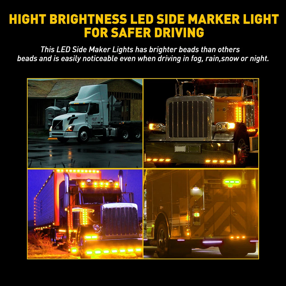 Specifications LED quantity: 4 LEDs per unit Material:ABS Housing + PC Lens Light color: Amber Voltage:12v-24v Service life:50000h+ Fits for: Suitable for all DC 12V-24V trailers, trucks, caravans, pick up, car, Van, RV, lorry, boat, etc Features: *High brightness: High brightness light outputs for improving driving safety. *Waterproof design: The waterproof design of the product works even under extreme conditions especially in rainy or foggy days.(IP67) *Great design: Compared with other brands, our back wire lead is added proper glue to make it completely seal without affecting the surface mount. *Application 4pcs 4-LED Side Marker Amber Lights Clearance Light Trailer Turn Signal Lamp Specifications LED quantity: 4 LEDs per unit Material:ABS Housing + PC Lens Light color: Amber Voltage:12v-24v Service life:50000h+ Fits for: Suitable for all DC 12V-24V trailers, trucks, caravans, pick up, car, Van, RV, lorry, boat, etc Features: *High brightness: High brightness light outputs for improving driving safety. *Waterproof design: The waterproof design of the product works even under extreme conditions especially in rainy or foggy days.(IP67) *Great design: Compared with other brands, our back wire lead is added proper glue to make it completely seal without affecting the surface mount. *Application It can be used as clearance light, side marker light, rear marker light, turn signal light, tail light etc. *Energy-saving with lower consumption. Packaging include: Amber Side Marker Light*4 Item Specifics Brand Unbranded Lighting Technology LED Suitable For Side Marker Light Number of Bulbs 4 Light Color Amber Type Side Clearance Marker Lights Features Plug and Play, Easy Installation, Sealed Assembly Manufacturer Part Number CBD-4LED-4Y Voltage DC 12V-24V Universal Fitment Yes Manufacturer Warranty 2 Years Bulb Life Hours Up to 50,000 Hours Waterproof Rate IP67 Placement on Vehicle Front, Rear, Left, Right Payment We can accept payment by credit, debit, and gift cards; Apple Pay, Google Pay, PayPal, and PayPal Credit. Shipping 1. All items will be shipped in 24 hours after receiving your payment . 2. We ship this item to US only via USPS first class mail. It usually takes 3-5 working days to deliver. Returns 1. We offer 60 days return policy. 2. Please contact us within 60 days from the date you receive your package if you have any questions with the products . 3. Refund will be sent after we got your returned package. 4. All returned items should be in the original packaging with tracking number. Contact Us We work from Monday - Saturday 9:00AM - 6:00PM PST, but we will reply you once we get your message .There will be some delay on response if you send message or E-Mail on Sunday. DESCRIPTION PAYMENT SHIPPING RETURN POLICY CONTACT US Hot item AUXITO 3157 3156 LED Flashing Brake Stop Stobe Tail Light Bulb Blinker Bulb 2F23 USD 12.91 AUXITO 3157 4157 Amber LED Turn Signal Side Marker Indicator Corner Light 2F23 USD 12.91 Help & Info Payment Policy Shipping Policy Return Policy FAQ About Us 4pcs 4-LED Side Marker Amber Lights Clearance Light Trailer Turn Signal Lamp Specifications LED quantity: 4 LEDs per unit Material:ABS Housing + PC Lens Light color: Amber Voltage:12v-24v Service life:50000h+ Fits for: Suitable for all DC 12V-24V trailers, trucks, caravans, pick up, car, Van, RV, lorry, boat, etc Features: *High brightness: High brightness light outputs for improving driving safety. *Waterproof design: The waterproof design of the product works even under extreme conditions especially in rainy or foggy days.(IP67) *Great design: Compared with other brands, our back wire lead is added proper glue to make it completely seal without affecting the surface mount. *Application It can be used as clearance light, side marker light, rear marker light, turn signal light, tail light etc. *Energy-saving with lower consumption. Packaging include: Amber Side Marker Light*4 Payment Shipping Returns Contact Us We can accept payment by credit, debit, and gift cards; Apple Pay, Google Pay, PayPal, and PayPal Credit. 1. All items will be shipped in 24 hours after receiving your payment . 2. We ship this item to US only via USPS first class mail. It usually takes 3-5 working days to deliver. 1. We offer 60 days return policy. 2. Please contact us within 60 days from the date you receive your package if you have any questions with the products . 3. Refund will be sent after we got your returned package. 4. All returned items should be in the original packaging with tracking number. We work from Monday - Saturday 9:00AM - 6:00PM PST, but we will reply you once we get your message .There will be some delay on response if you send message or E-Mail on Sunday. All rights reserved. On Sep 25, 2024 at 21:45:38 PDT, seller added the following information: