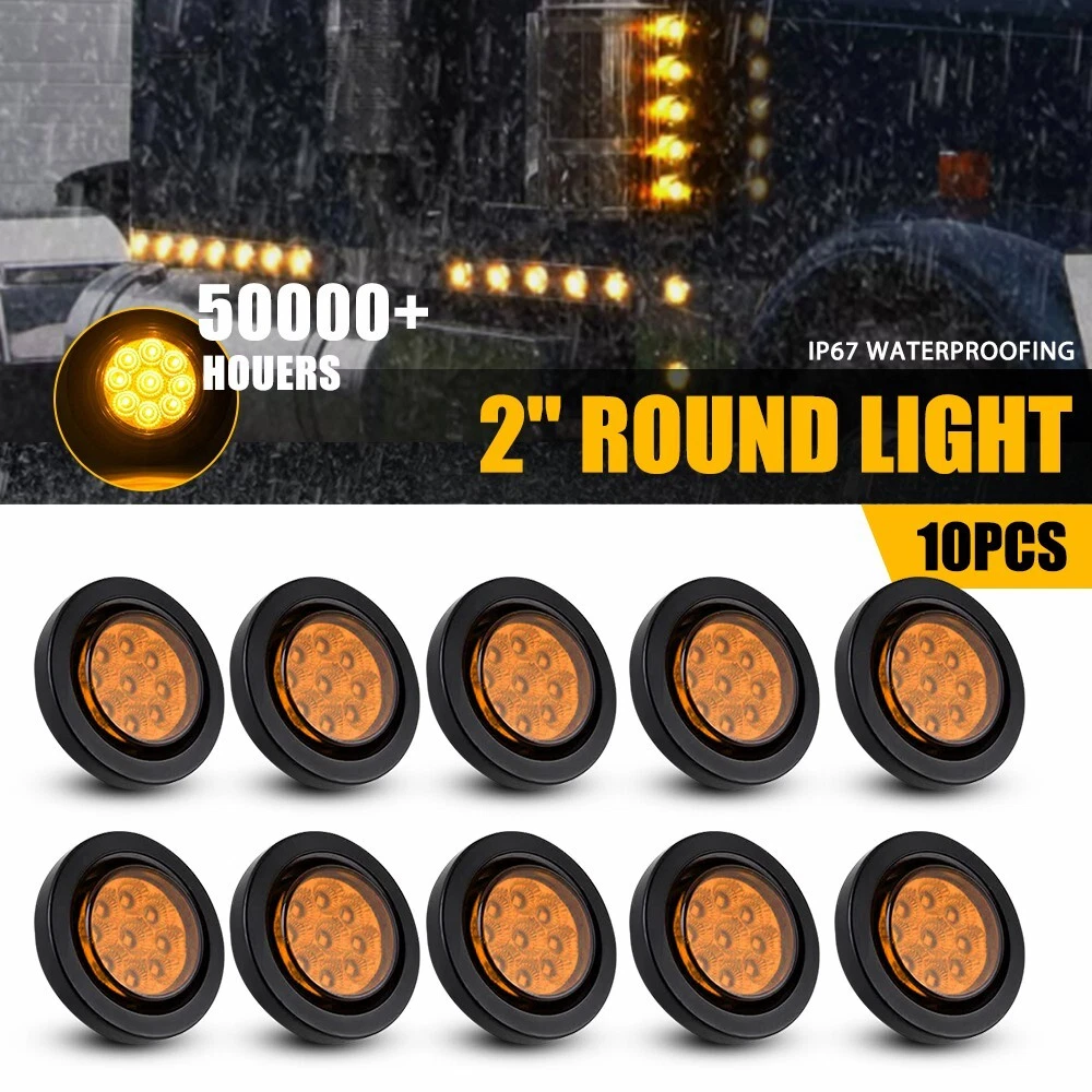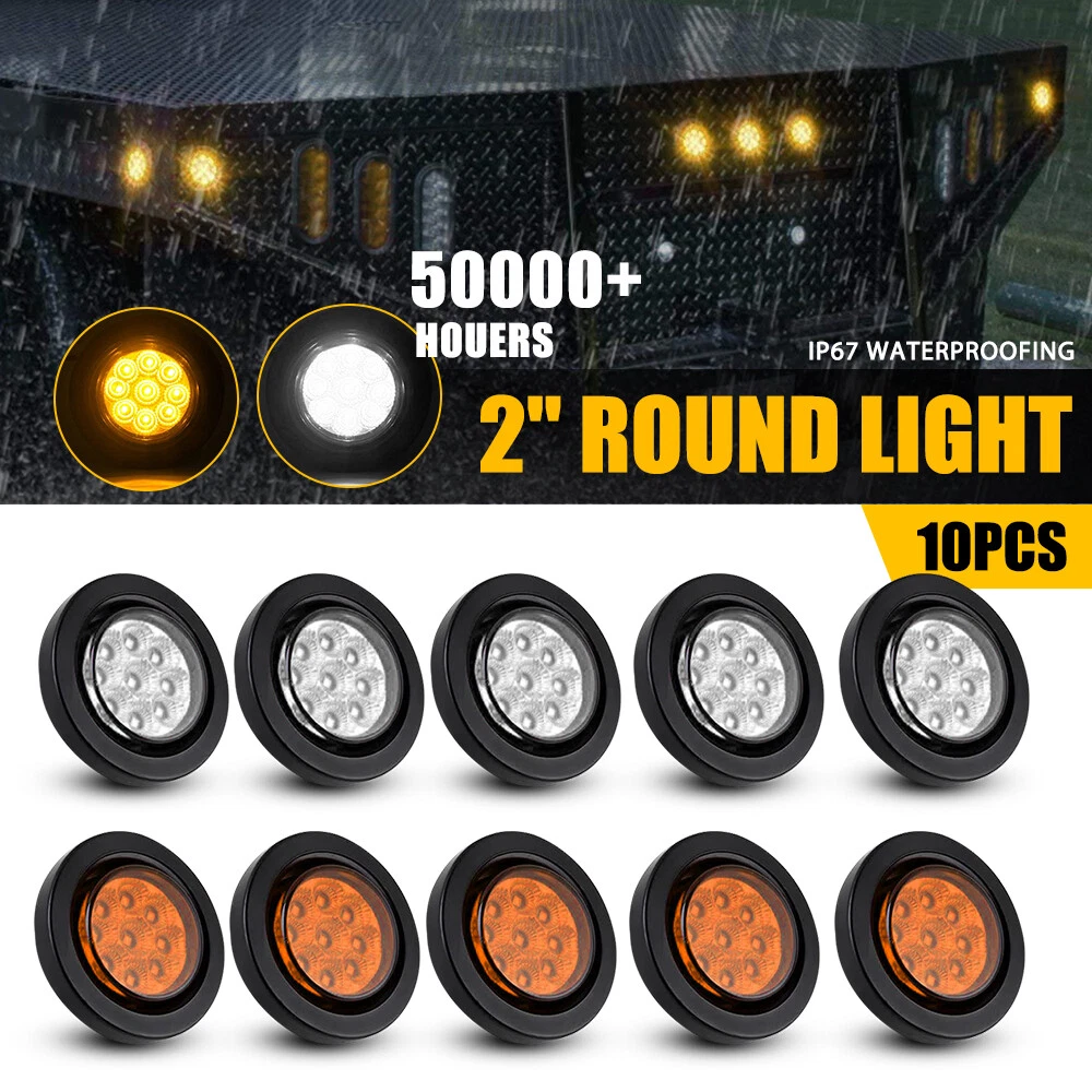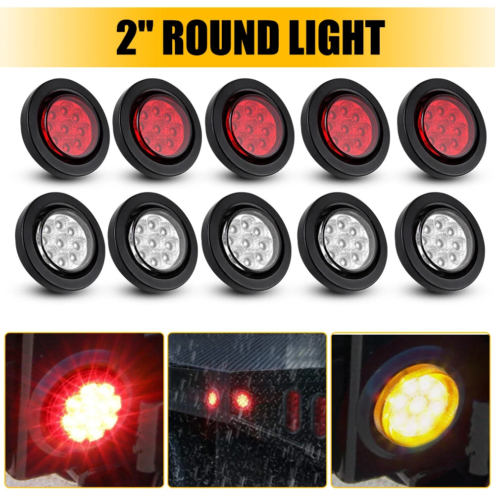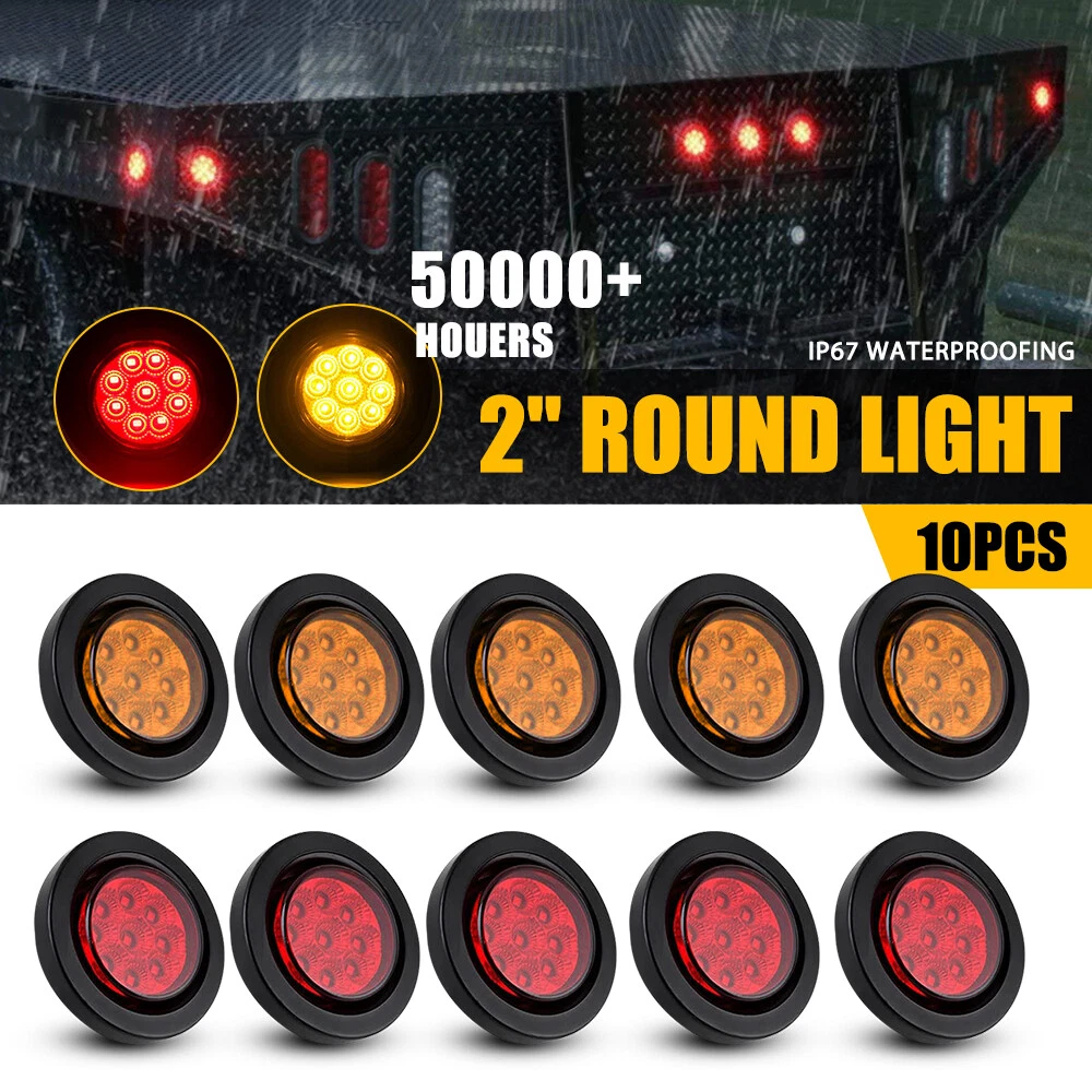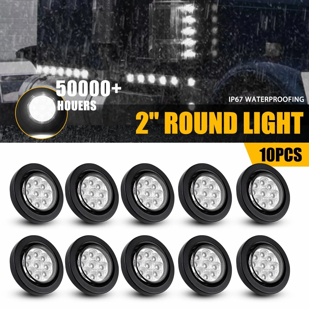5-10PCS 2-Inch DOT Round LED Trailer Marker Lights with Grommet for Trucks
