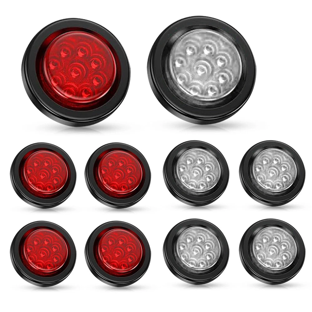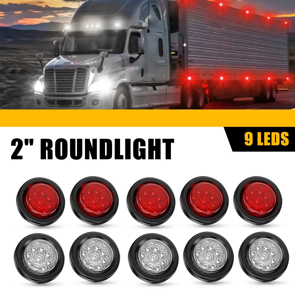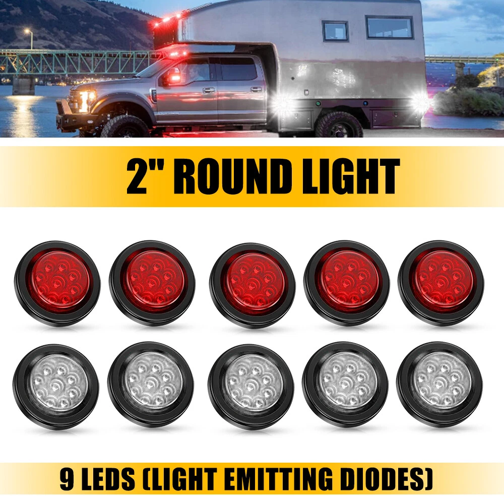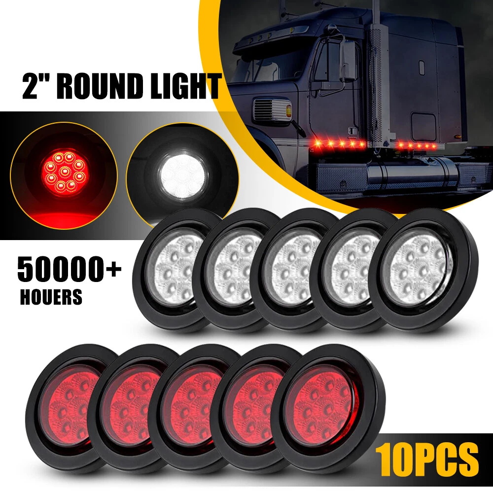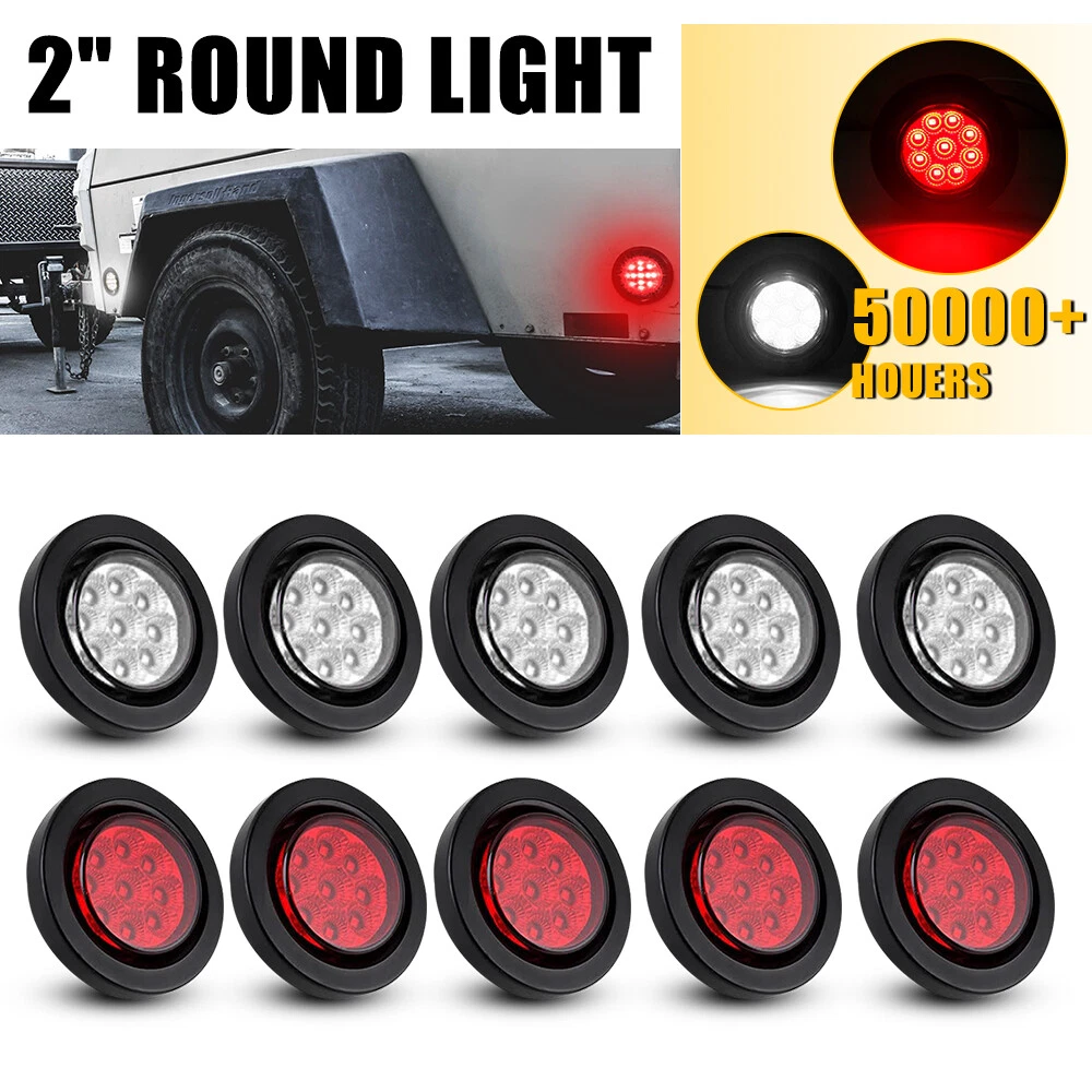 5-10PCS 2-Inch DOT Round LED Trailer Marker Lights with Grommet for Trucks