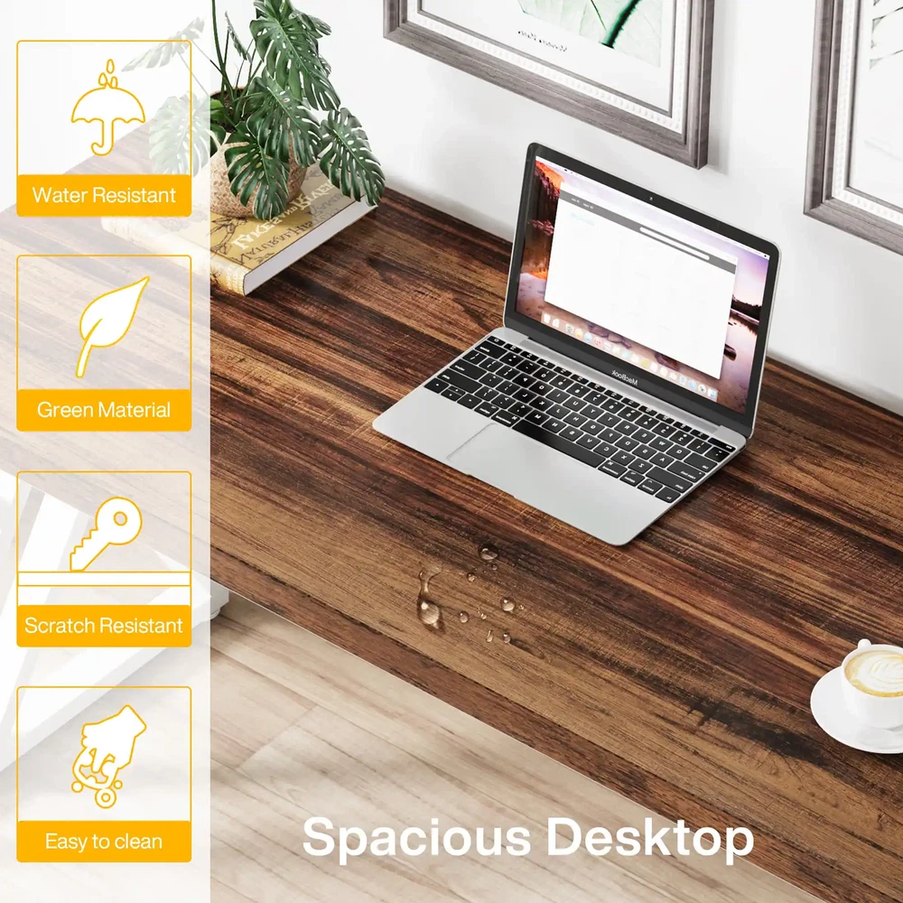 Upgrade your home office with this versatile and stylish 55" Heavy Duty Computer Desk. The rustic wood grain textured top paired with the Z-shape metal legs give your workspace an industrial and trendy look. With a high weight capacity of up to 330lbs, this desk can withstand heavy equipment and multiple monitors. The waterproof and deformation-resistant MDF tabletop ensures durability while the adjustable foot-pads provide stability on any surface. Assembly is a breeze, making it easy to elevate your workspace in no time. Features: Rustic wood grain textured top with stylish Z-shape metal legs 55 inches of ample workspace Waterproof and deformation-resistant MDF tabletop Steel tube in powder coating High weight capacity of up to 330 lbs 4 adjustable foot-pads for stability on uneven floors Easy assembly Specifications: Color: Rustic Brown & Black Maximum Bearing Capacity: 330lbs Top Material: Manufactured Wood Base Material: Metal Overall: 55.12”W x 29.52”H x 23.62”D Desktop: 55.12” x 23.62” Adult Assembly Required: Yes
