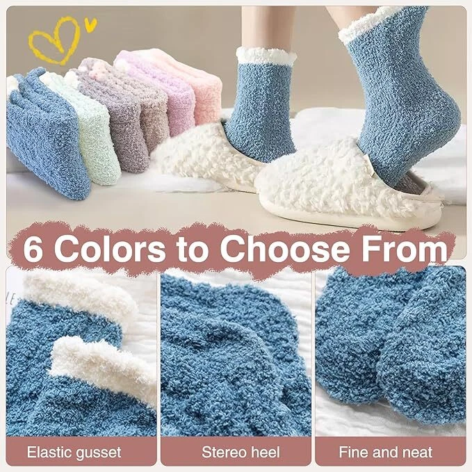 6 Pairs Fuzzy Cozy Socks for Women, Soft Fluffy Slipper Warm Sleep Socks Soft Fuzzy Socks for Women - Made from warm and high quality plush material , these comfy cozy socks offer a soft touch to keep your feet warm and comfortable. Free Size Slipper Socks - These high-elastic womens fluffy socks fit US sizes 5-10 and come in various colors, making them perfect for most women and girls. Warm Sleeping Socks - The ideal thickness makes these comfy fluffy socks great for sleeping, keeping your feet warm for a cozy night’s rest. Winter Women Socks - This pack includes 6 solid color slipper socks (pink, green, purple, brown, gray, blue), perfect for daily wear at home or out.Their extreme softness will make you never want to take them off, warm house socks choice. Fantastic Gift - This stylish and cozy pair of winter socks makes a thoughtful, cozy gift for your wife, daughter, girlfriend, friend, or colleague, perfect for occasions like Thanksgiving, Christmas, birthdays, Valentine's Day, and Mother's Day. The hottest fashion accessory trend!! Shipping We offer FREE shipping on all orders! We ship within Three business days of payment, usually sooner. We use a selection of shipping services such as UPS, FedEx, USPS etc. We only ship to the lower 48 states, no APO/FPO addresses or PO Boxes allowed. Local pickups and combined shipping options are not provided at this time. Return You can return a product for up to 30 days from the date you purchased it. Any product you return must be in the same condition you received it and in the original packaging. Please keep the receipt. Payment We accept payment by any of the following methods: PayPal Please pay as soon as possible after winning an auction, as that will allow us to post your item to you sooner! Feedback Customer satisfaction is very important to us. If you have any problem with your order, please contact us and we will do our best to make you satisfied. Contact Us If you have any queries, please contact us via ebay. We usually respond within 24 hours on weekdays. Please visit our eBay store to check out other items for sale! Thank you for shopping at our store.