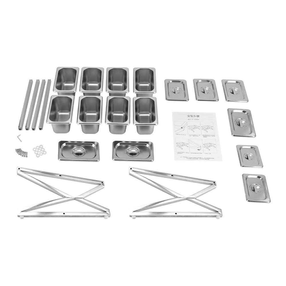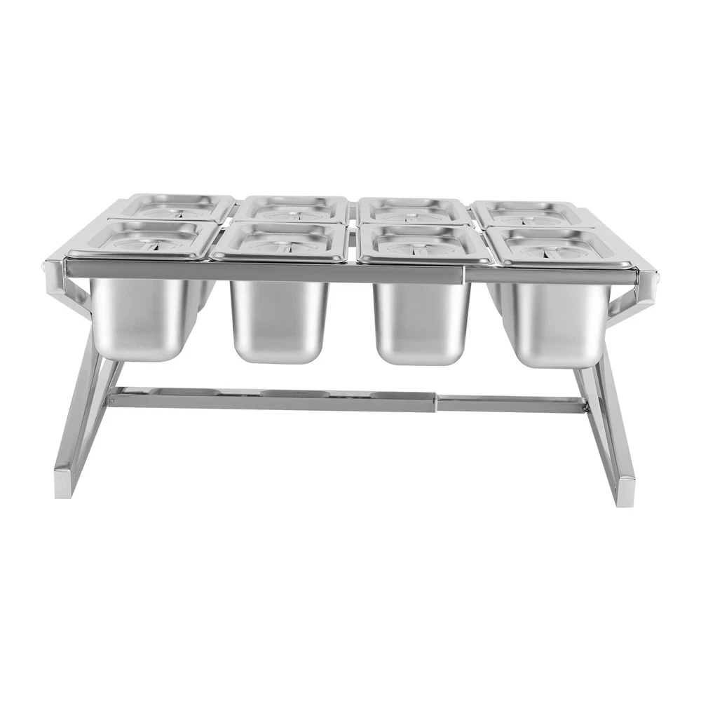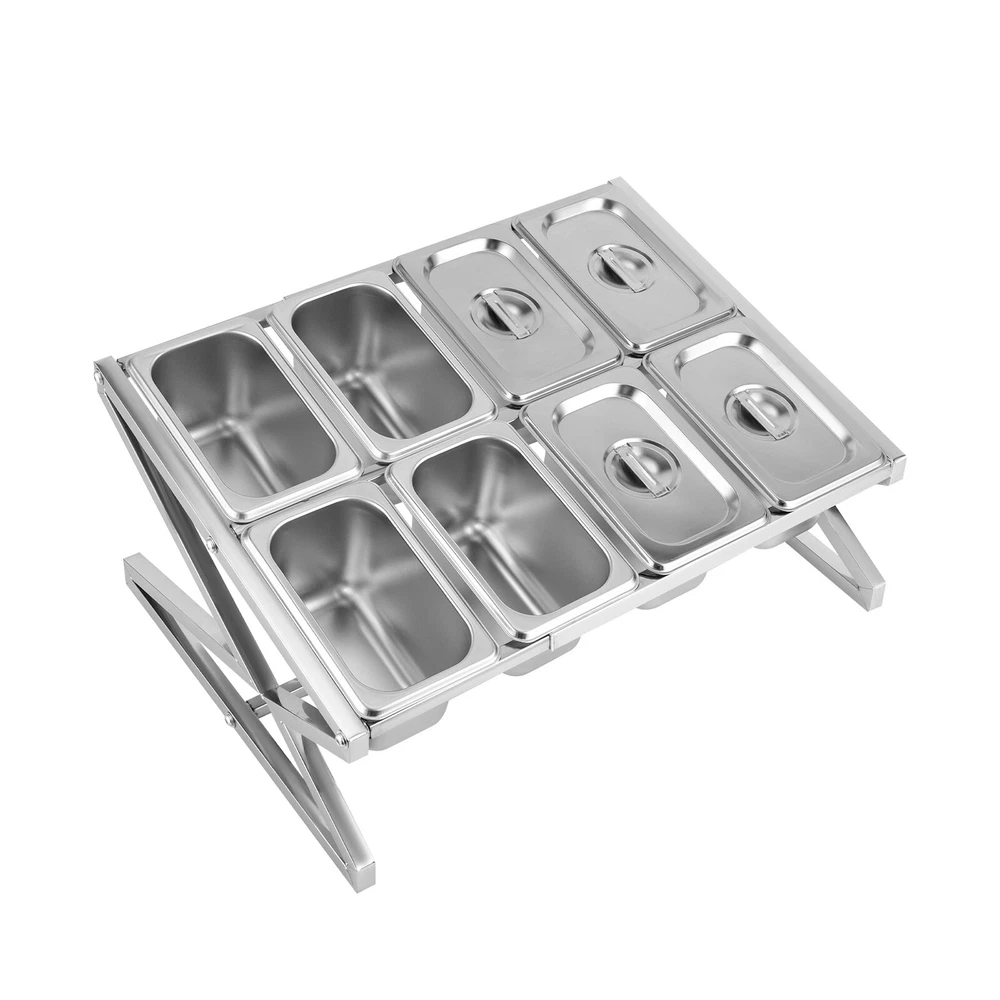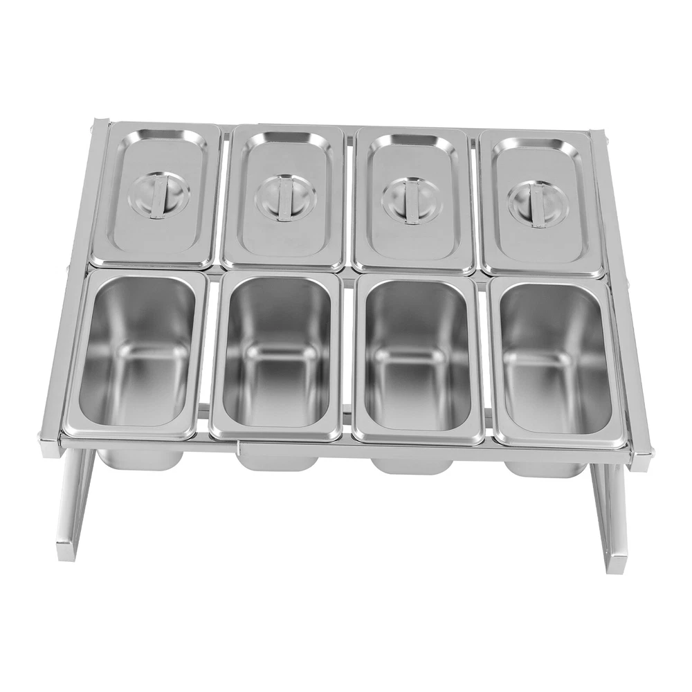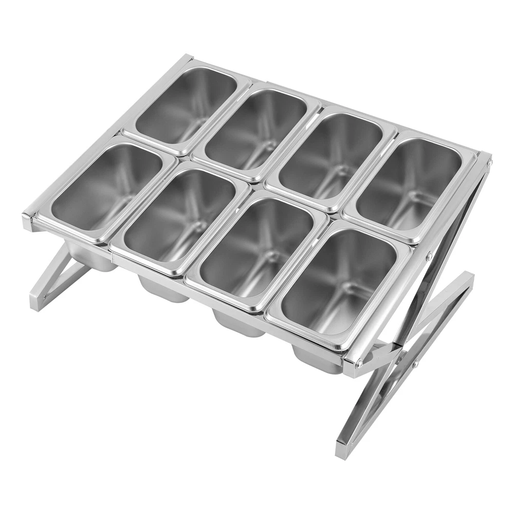 Specifications Color: Silver Style: Modern Shape: Rectangle, Triangle Material: Stainless Steel Process: Polishing Number of Pans: 8 Assembly Required: Yes Mounting Type: Tabletop Pan Type: 1/9 Each Pan Capacity: 900ml/0.24gal Each Pan Depth: 10cm/3.94in Load-bearing Capacity: 15kg/33.07lbs Scalable Length Range: 35.5-65cm/13.98-25.59in Product Size(W*H): 36*23cm/14.17*9in Package Size: 41*31*16cm/16.14*12.2*6.3in Net Weight: 2.6kg/5.73lbs Gross Weight: 2.9kg/6.39lbs Package Included 1* Spice Rack 8* Food Pans 8* Lids 1* Chinese Installation Diagram 8 Pans Spice Rack Kitchen Storage Shelf Kitchen Spice Holder Stainless Steel Description~~ Description Are you still struggling with the messy countertop? Our spice rack can solve your problem. High-quality stainless steel and exquisite craftsmanship make it sturdy and durable. The triangular structure design provides it with excellent load-bearing capacity, allowing you to use it with confidence. In short, it keeps your kitchen clean and organized, while keeping your cooking essentials within reach. Key Features Build to Last: Made of stainless steel with a polishing process, this product is wear-resistant, corrosion-resistant, safe to use, and durable, ensuring your long-term use. It is an ideal choice for various delicacies or commercial kitchens. Storage Assistant: With eight food pans, it can store various seasonings, vegetables, fruits, and other items (all are not included), keeping your kitchen clean and organized. Excellent Load-bearing Capa city: The triangular structure and stable foot pads allow this product to bear a weight of 33.07 lbs, allowing you to use it with confidence without worrying about shaking. Adjustable Length: You can adjust it to a maximum length of 25.59 inches and a minimum length of 13.98 inches, allowing you to easily customize the rack to accommodate various sizes of hotel pans. Simple Installation: A simple structure, a Chinese installation diagram, and complete accessories can help you quickly complete the installation, which is convenient. Details Protective Lid: The lid with a handle can prevent dust and insects from entering, keep the food fresh, and make it easy to close and open the item. Round Edges: The smooth and round edges are gentle on your skin, protecting your hands from scratches when picking up the items. Application It is suitable for storing various seasonings, vegetables, fruits, and other items in kitchens, buffets, dining activities, etc. Specifications Color: Silver Style: Modern Shape: Rectangle, Triangle Material: Stainless Steel Process: Polishing Number of Pans: 8 Assembly Required: Yes Mounting Type: Tabletop Pan Type: 1/9 Each Pan Capacity: 900ml/0.24gal Each Pan Depth: 10cm/3.94in Load-bearing Capacity: 15kg/33.07lbs Scalable Length Range: 35.5-65cm/13.98-25.59in Product Size(W*H): 36*23cm/14.17*9in Package Size: 41*31*16cm/16.14*12.2*6.3in Net Weight: 2.6kg/5.73lbs Gross Weight: 2.9kg/6.39lbs Package Included 1* Spice Rack 8* Food Pans 8* Lids 1* Chinese Installation Diagram All Accessories for Installation Notes Please note that this product does not include other items shown in the picture. Please allow the slight color difference caused by the shooting light and 1-3cm error due to manual measurement, and make sure you do not mind before you order. Payment Delivery details Terms of sales About us Contact us Payment We accept ebay payment 。 Fees such as import duties, taxes are not included in the item price or shipping costs. These charges are the buyer's responsibility. Delivery details Shipping: 2-9 working days to: USA Terms of sales We maintain high standards of excellence and strive for hundred percent customer satisfaction. Feedback is very important to us. We hope that you contact us immediately before you give neutral or negative feedback, so that we can address your concerns. It is impossible to address issues if we do not know about them! About us Your satis faction is our ultimate goal. We work hard to earn your trust and future business. Our certified technicians have tested each item before shipping. The unit comes with 1 year limited warranty on all manufacturing defects. a) If you receive a defective item, you may return it or ask for a discount. Please contact us within 14 days after you receive the package. b) What you returned must be intact and in its original packaging as re? u. Customer is responsible for shipping costs of the returned item. c) We will cover the cost of shipping back t with the shipping rate indicated in the registration page. We will send you a new unit or refund the full payment you paid. Thank you. Contact us Business Hour Business Hour: Monday To Friday: 8:30 AM to 5:00 PM (Beijing China time) Due to time zones, our reply to your questions may not be immediately. But within above working time, we will reply your email within 24 hours. If it's non-workdays, please kindly be patient and wait till Monday. Please contact us with ebay message. Please feel free to contact us if you have any questions. Monday To Friday: 8:30 AM to 5:00 PM (Beijing China time) Due to time zones, our reply to your questions may not be immediately. But within above working time, we will reply your email within 24 hours. If it's non-workdays, please kindly be patient and wait till Monday. Please contact us with ebay message. Please feel free to contact us if you have any questions. Features ❤Compact Design,Beautiful Appearance❤ Fe'a'tu're's ★Stable performance and high quality★ Feature ❤Great value with warranty❤ Type Spice Rack Material Stainless Steel Color Silver Shape Rectangle, Triangle Number of Pans 8 Assembly Required Yes Each Pan Capacity 900ml/0.24gal Each Pan Depth 10cm/3.94in Load-bearing Capacity 15kg/33.07lbs Scalable Length Range 35.5-65cm/13.98-25.59in Product Size(W*H) 36*23cm/14.17*9in Net Weight 2.6kg/5.73lbs Item Length As pictures Item Width As pictures Item Height As pictures Brand Unbranded
