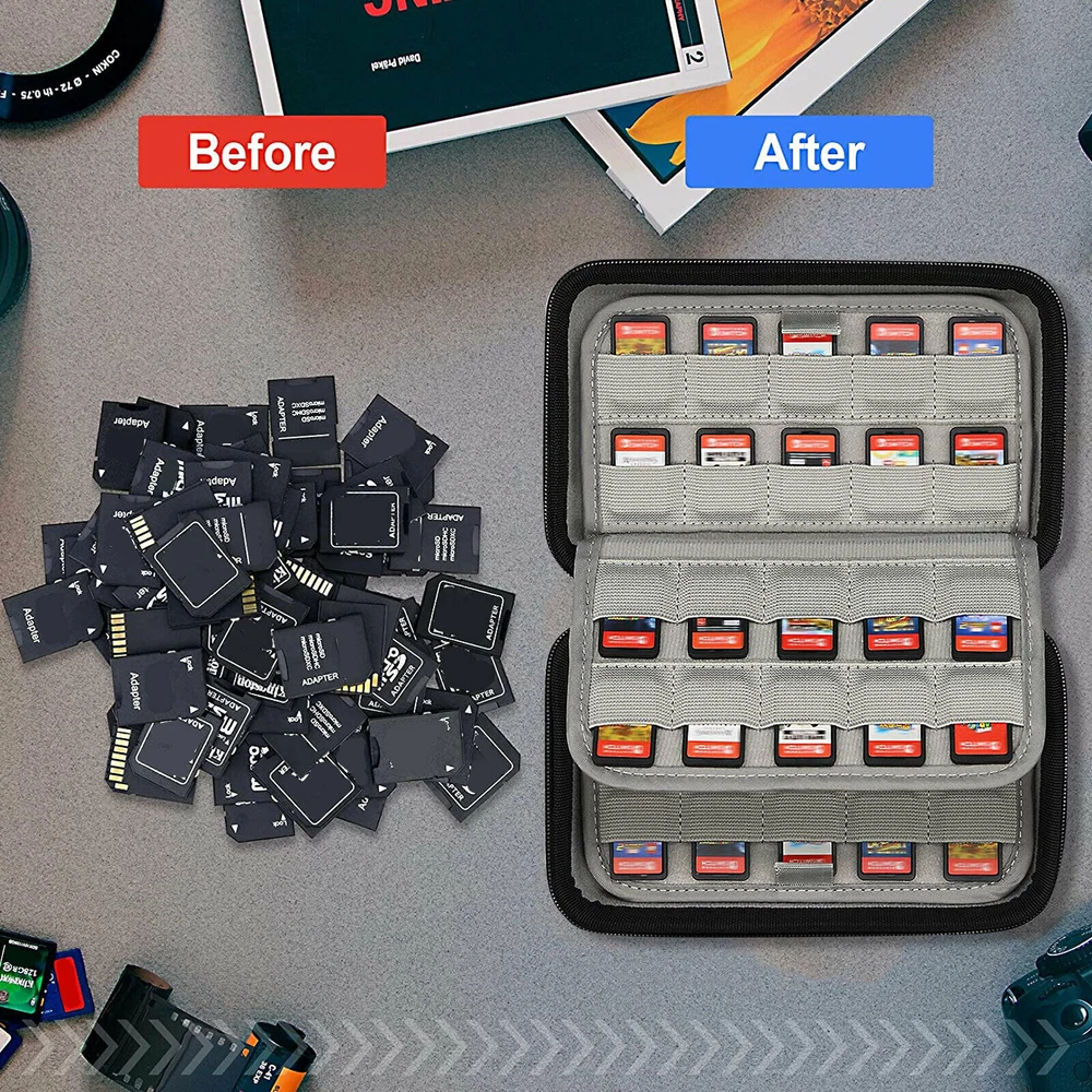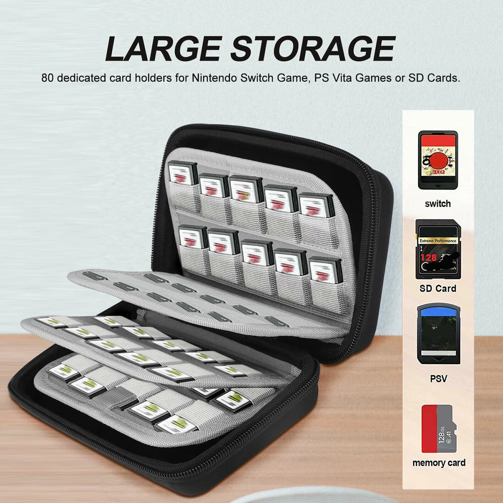 Product Description Features: The games and memory cards storage case nicely hold up to 80 cards. It is compact and durable that gives you a perfect storage solution. Don't worry about your game cards in a mess. What's more, you can carry it while on the go, enhance your gaming experience. Durable Hard Shell Case: Protects for Nintendo Switch game card, for PS Vita game cartridges or SD Cards from damages. Large Storage: 80 dedicated card holders for Nintendo Switch Game, for PS Vita Games or SD Cards. Easy To Use: Putting in and taking out game or SD cards takes no effort, ideal for both kids and adults. Unlike plastic game cases you do not have to worry about breaking the game or case when removing the games. Specifications: Type: Game Case Holder Storage Bag for Nintendo Switch Material: Cloth Color: Black Size: 19*11*5.8cm Weight: 255g Package include: 1 x Game Card Storage Bag If you have any doubts or uncertainty about this item, contact us with no hesitation, we are always here and will solve your problems. Thanks and wish you a nice day! About Us We dedicated to provide excellent products and services for all customers on ebay. hope we all can have a nice experiences on eBay. Payment We accept all verified payment through PAYPAL payment. Shipping Usually, Item will be shipped within 1-2 working day after full payment is received. Normally, you will receive the item in 5-7 days. Please contact us if you don’t receive the items after 10 working days after the payment If you have any questions about shipping, please feel free to contact us. Returns Always believe we can solve problems by communication if it comes to any problems about products or any others. If it comes to a return, the products must be intact and as original when you received, and should be within 30 days after you received it. Contact Us Work time: 9:00 AM to 18:00 PM Beijing Time You can contact us at anytime you want, we will reply all messages at the first time. powered by