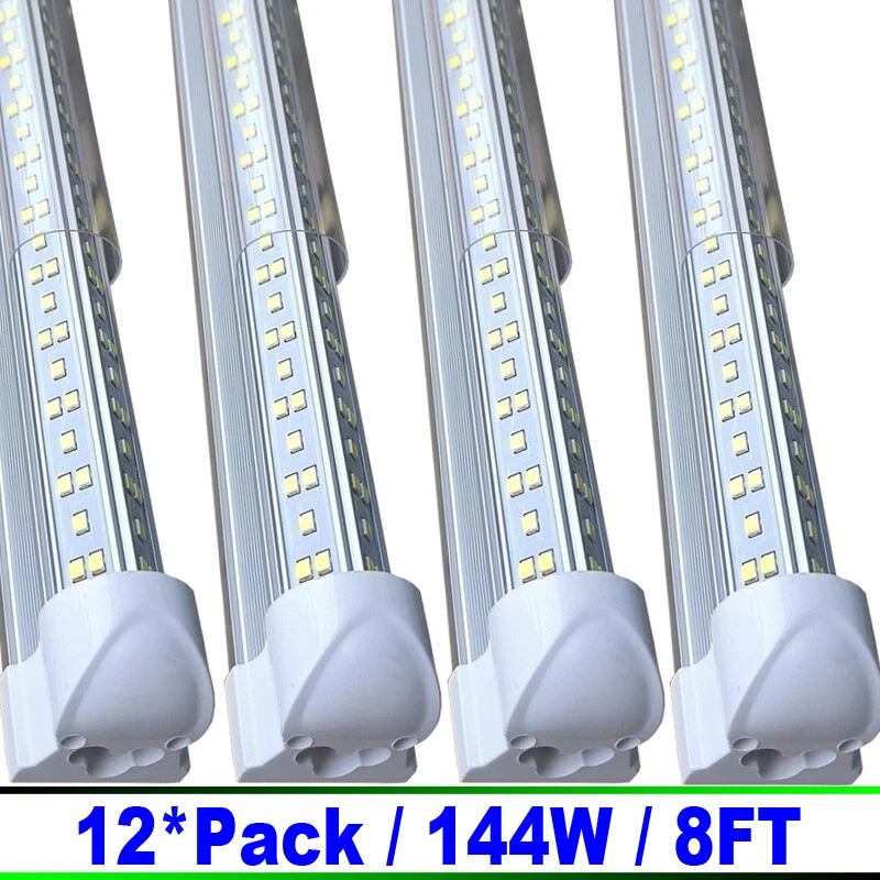 FAST DELIVERY - Ship from New Jersey or Los Angeles Warehouse via FedEx , 3-7 Days Delivered Your Door . SCIENTIFIC DESIGN - 8Ft LED Shop Lights Fixture is Made of 6500K Cold White SMD2835 LED Chip ,Plastic Clear Cover , Aluminum Bracket Housing ,and AC85-277V Constant Current Driver . It can work in -68F to 120F Temperature Conditions EASY INSTALLATION - The Integrated Tube Fixture Can be Install on Wall or Ceiling ,Easily Replace Traditional Fluorescent Tube Bulb . Plug and Play , Free Accessories (Power Cords, Connector , Extension Cords , Clip and Screw ) Come with Tube Lights Together WIDE APPLICATION - Linkable 8Ft Bulbs Widely Used in Garage Ceiling , Barbershop , Schools, Hospitals Basement , Factory Warehouses , Supermarkets Cooler Door , Offices, Shops,Hotels, etc 8Ft Integrated LED Tube Light Bulbs 144W 6500K LED Shop Light Fixture 12 Pack FAST DELIVERY - Ship from New Jersey or Los Angeles Warehouse via FedEx , 3-7 Days Delivered Your Door . SCIENTIFIC DESIGN - 8Ft LED Shop Lights Fixture is Made of 6500K Cold White SMD2835 LED Chip ,Plastic Clear Cover , Aluminum Bracket Housing ,and AC85-277V Constant Current Driver . It can work in -68F to 120F Temperature Conditions EASY INSTALLATION - The Integrated Tube Fixture Can be Install on Wall or Ceiling ,Easily Replace Traditional Fluorescent Tube Bulb . Plug and Play , Free Accessories (Power Cords, Connector , Extension Cords , Clip and Screw ) Come with Tube Lights Together WIDE APPLICATION - Linkable 8Ft Bulbs Widely Used in Garage Ceiling , Barbershop , Schools, Hospitals Basement , Factory Warehouses , Supermarkets Cooler Door , Offices, Shops,Hotels, etc