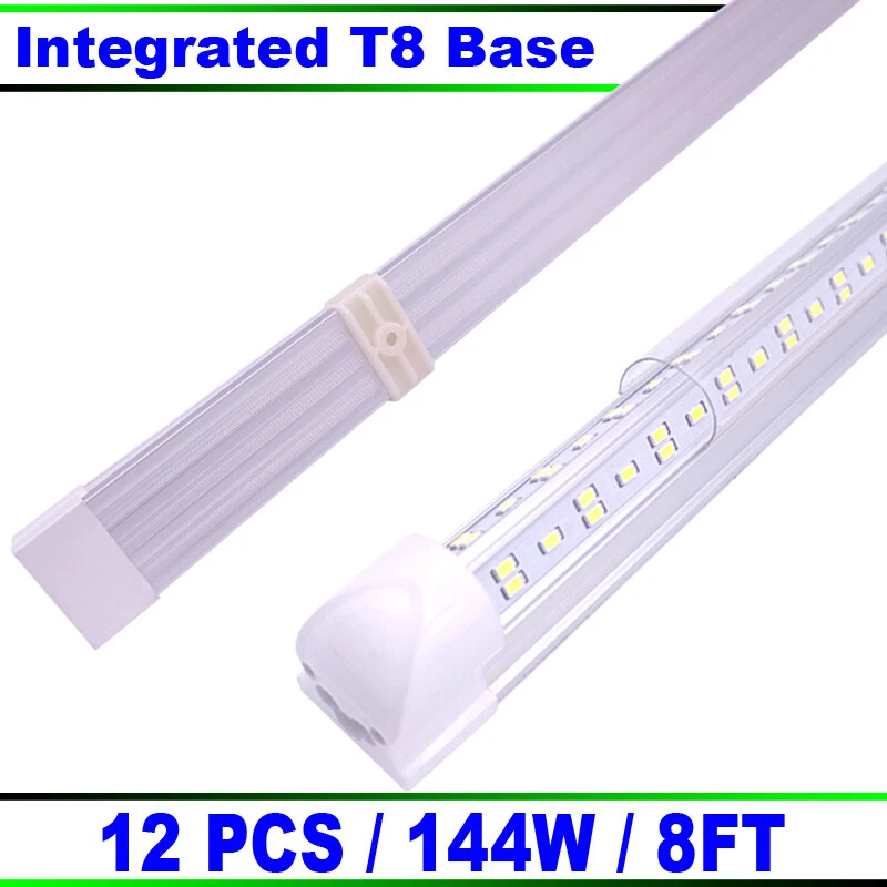 FAST DELIVERY - Ship from New Jersey or Los Angeles Warehouse via FedEx , 3-7 Days Delivered Your Door . SCIENTIFIC DESIGN - 8Ft LED Shop Lights Fixture is Made of 6500K Cold White SMD2835 LED Chip ,Plastic Clear Cover , Aluminum Bracket Housing ,and AC85-277V Constant Current Driver . It can work in -68F to 120F Temperature Conditions EASY INSTALLATION - The Integrated Tube Fixture Can be Install on Wall or Ceiling ,Easily Replace Traditional Fluorescent Tube Bulb . Plug and Play , Free Accessories (Power Cords, Connector , Extension Cords , Clip and Screw ) Come with Tube Lights Together WIDE APPLICATION - Linkable 8Ft Bulbs Widely Used in Garage Ceiling , Barbershop , Schools, Hospitals Basement , Factory Warehouses , Supermarkets Cooler Door , Offices, Shops,Hotels, etc 8Ft LED SHOP LIGHT V-SHAPE 144W 6500K LED Tube Light Linkable Ceiling 12Pc FAST DELIVERY - Ship from New Jersey or Los Angeles Warehouse via FedEx , 3-7 Days Delivered Your Door . SCIENTIFIC DESIGN - 8Ft LED Shop Lights Fixture is Made of 6500K Cold White SMD2835 LED Chip ,Plastic Clear Cover , Aluminum Bracket Housing ,and AC85-277V Constant Current Driver . It can work in -68F to 120F Temperature Conditions EASY INSTALLATION - The Integrated Tube Fixture Can be Install on Wall or Ceiling ,Easily Replace Traditional Fluorescent Tube Bulb . Plug and Play , Free Accessories (Power Cords, Connector , Extension Cords , Clip and Screw ) Come with Tube Lights Together WIDE APPLICATION - Linkable 8Ft Bulbs Widely Used in Garage Ceiling , Barbershop , Schools, Hospitals Basement , Factory Warehouses , Supermarkets Cooler Door , Offices, Shops,Hotels, etc