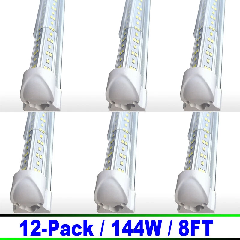 FAST DELIVERY - Ship from New Jersey or Los Angeles Warehouse via FedEx , 3-7 Days Delivered Your Door . SCIENTIFIC DESIGN - 8Ft LED Shop Lights Fixture is Made of 6500K Cold White SMD2835 LED Chip ,Plastic Clear Cover , Aluminum Bracket Housing ,and AC85-277V Constant Current Driver . It can work in -68F to 120F Temperature Conditions EASY INSTALLATION - The Integrated Tube Fixture Can be Install on Wall or Ceiling ,Easily Replace Traditional Fluorescent Tube Bulb . Plug and Play , Free Accessories (Power Cords, Connector , Extension Cords , Clip and Screw ) Come with Tube Lights Together WIDE APPLICATION - Linkable 8Ft Bulbs Widely Used in Garage Ceiling , Barbershop , Schools, Hospitals Basement , Factory Warehouses , Supermarkets Cooler Door , Offices, Shops,Hotels, etc 8Ft LED Shop Light Fixture -144W 18000LM, 6500K Integrated Tube Light 12 Pack FAST DELIVERY - Ship from New Jersey or Los Angeles Warehouse via FedEx , 3-7 Days Delivered Your Door . SCIENTIFIC DESIGN - 8Ft LED Shop Lights Fixture is Made of 6500K Cold White SMD2835 LED Chip ,Plastic Clear Cover , Aluminum Bracket Housing ,and AC85-277V Constant Current Driver . It can work in -68F to 120F Temperature Conditions EASY INSTALLATION - The Integrated Tube Fixture Can be Install on Wall or Ceiling ,Easily Replace Traditional Fluorescent Tube Bulb . Plug and Play , Free Accessories (Power Cords, Connector , Extension Cords , Clip and Screw ) Come with Tube Lights Together WIDE APPLICATION - Linkable 8Ft Bulbs Widely Used in Garage Ceiling , Barbershop , Schools, Hospitals Basement , Factory Warehouses , Supermarkets Cooler Door , Offices, Shops,Hotels, etc