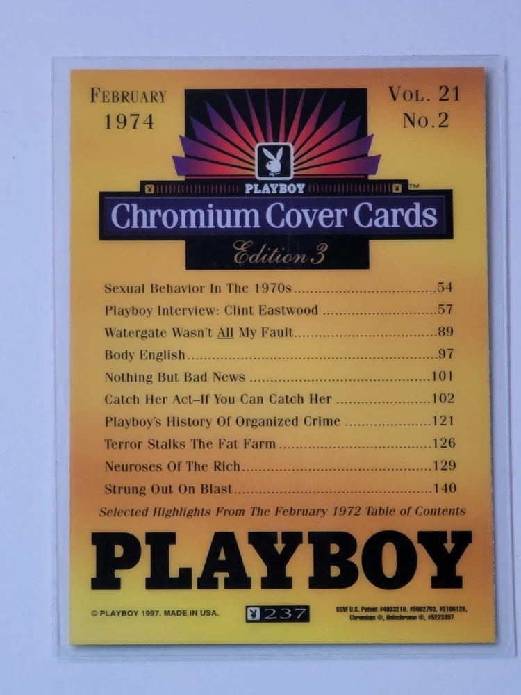 .999 Silver Grain Playboy - Chromium Cover Card February 1974 Vol 21 No 2