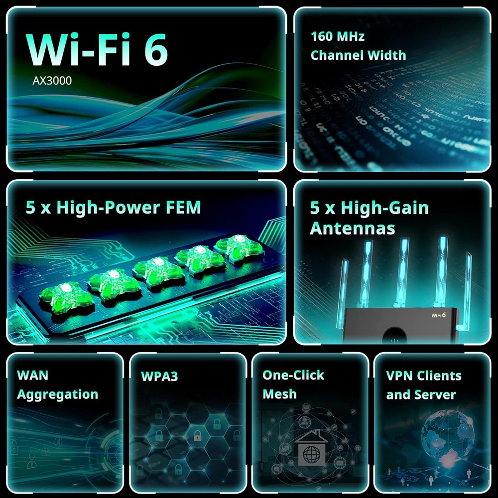 Store New Arrivals Add to Favorite View Feedback Contact AX3000 Wi-Fi 6 Router, Dual Band Internet, 802.11Ax Wireless, Coverage up to 3,000 Sq. Ft., Gigabit Wan Aggregation, WPA3, Smart VPN for Large Home (RG-E4) Description Item model number AX3000 Product Dimensions 12 x 7 x 7 inches Country of Origin China Compatible Devices Gaming Console, Security Camera, Personal Computer, Tablet, Printer Item Weight 1.06 pounds Connectivity Technology Wi-Fi, Ethernet Frequency Band Class Dual-Band Wireless Communication Standard 802.11n, 802.11b, 802.11ax, 802.11ac Model Name AX3000 Recommended Uses For Product Home, Gaming, Business Model AX3000 Frequency 160 MHz Special Feature Beamforming, Access Point Mode, Guest Mode, Parental Control Included Components Quick installation guide, Adapter, RG-E4 router AX3000 Wi-Fi 6 Router: This dual-band Wi-Fi 6 router delivers Wi-Fi speeds of up to 2402 Mbps on the 5 GHz band and 574 Mbps on the 2.4 GHz band. Better Signal: Boasting five omnidirectional antennas and five high-power FEMs, this router provides a stronger Wi-Fi signal that can penetrate through one more wall, ensuring reliable connectivity even in houses with complex layouts and diverse room types. (Coverage can reach up to 3000 square feet.) Gaming Traffic Prioritization: Experience an enhanced gaming experience with Reyee's gaming traffic prioritization technology, which intelligently detects and optimizes gaming packets. The E4 router supports up to 128 devices. Multi-Gig Ethernet: WAN ports can be aggregated to establish an ultra-fast Internet connection of up to 1.6 Gbps for maximum performance. Doubled throughput enables your devices to run at full speed. One-Click Reyee Mesh: Simply press the Reyee Mesh button, Reyee's exclusive mesh algorithm significantly enhances the data transmission speed by up to 50%. Attention: E4 is a router, not a modem, and requires a modem for proper functioning. Product Description ABOUT US We offer the best prices around on high quality products. Our E-store includes media such as books, movies, music and games while offering electronics, toys, sporting apparel, clothing, tools, general home, garden items and more. SHIPPING We are always working hard to ensure your package arrives as soon as possible. Please understand that some factors like weather, high postal traffic, and the performance of shipping companies are outside of our control. We offer free shipping to the lower 48 states and ship within 2 business days of payment, usually sooner. We do not accept P.O. Boxes. Please provide a physical address. For shipping outside of the continental USA, we only use eBay's Global Shipping Program.The item is shipped to KY and then sent to the rest of the world. International customers are responsible for all duties and taxes. Continue to check out in order to calculate costs for shipping the item to your country. Messages regarding eBay's Global Shipping Program MUST be directed at eBay EXCLUSIVELY. RETURNS We offer a 30-Day Return Policy on items which you are not completely satisfied with. You have the option for a full-refund or an exchange of the item. No returns are available on items shipped outside of the USA. PAYMENT We accept PayPal. CONTACT US This page content is yet to come Please ad us to your favorite seller and visit again later Thank You CUSTOMER SATISFACTION We try our very best to make sure every customer is completely satisfied. If there's a problem, message us! We're happy to help. WE ACCEPT Copyright © 2021 AutoDS. | All Rights Reserved