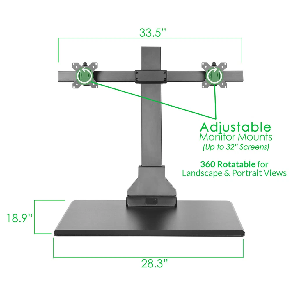 Electric Motorized Height Adjustable Standing Desk Converter About Us Shipping Returns & Policies FAQ Home & Garden Kids & Babies Sports & Outdoor Health & Fitness Business & Industrial AdvanceUp Electric Auto Standing Desk Converter Riser with Dual Monitor Mount Product Details 44 LB CAPACITY: Electric motorized with 44LB Capacity, Equipped with Strong Electric Motorized Lift System, it goes up and down in a touch of a button. ERGONOMIC HEIGHT RANGE: Wide adjustable height range(1.4"-21"), fits most desks and most people. Curved smooth edge for extra comfort for arms and wrists. DUAL MONITOR MOUNT: Universal 75x75mm and 100x100mm monitor mounts, and most monitors up to 32 inches. Flexible monitor mounts with tilt, swivel and rotation ability. EASY HEIGHT ADJUST: By just pushing a button, the converter goes up and down with no hassle, for changing your sitting and standing position during work. READY TO GO: Very minimal assembly out of the box. Stable large free-standing base makes it does not require any modifications to your desk, instantly transforms desks into a sit-stand workstation. Brand AdvanceUp Condition NEW Color Black - Electric 1-tier Size Electric AdvanceUp Electric Automatic Standing Desk Converter Riser with Dual Monitor Mount The AdvanceUp Electric Motorized Height Adjustable Sit-Stand Workstation, allows you to instantly convert your office desk into ergonomic desktop -- With just a touch of your finger. The stand up desk helps you maintain a healthier balance of sitting and standing throughout the long work day. This Stylish, Functional, and Affordable solution allows you instantly enjoy the relieves on you back and neck. Experts agree that sitting 6+ hours a day significantly increases the chances of disease ranging from diabetes, cardiovascular diseases, and even CANCER! Standing periodically throughout the day keeps the blood flowing and helps you stay awake and alert. This is an invaluable investment for your health and well being. The AdvanceUp Ergonomic Desk is equipped with an electric motorized lift system that allows you to switch between sitting and standing in seconds, by just pressing a button. With the 1.4" to 21" height adjustable range, you can instantly switch your sit or stand without any interruptions. Its ultra slim design, with 44 lbs. max load capacity and the 28.3" X 18.9" work surface, makes it perfectly accommodated your laptop, keyboard, mouse and more! Features Sturdy Steel Constructed Base with a Coated Finish Laminated MDF Desktop Built-In Cable Management Height adjusts from 1.4" to 21" , Electric Motorized Lift System Dual Free-tilting and 360° rotation Monitor Mounts, design for multiple monitor viewing angles, suggested screen size 13"-23" Large Work Surface, Designed to fit most desks and cubicles Specification Brand: AdvanceUp Color: Black Height Range: 1.4" to 21" Work surface: 28.3" X 18.9" Weigh Capacity: 44 lbs. Monitor mount tilt range: +45° to -45° Monitor mount swivel range: +30° to -30° Monitor rotation: +180° to -180° Additional Images CUSTOMER SATISFACTION - || - FAST & FREE SHIPPING - || - SAME DAY HANDLING Shipping & Will Call We proudly offer FREE upgraded shipping to 1 to 3-business day expedited Shipping and same day handling!!! Same Day handling on orders received before 2 P.M. local time. Orders are shipped out via UPS or USPS (Priority Shipping) with tracking numbers. Once an order is shipped, we will forward the tracking number & update your eBay order. We ship to the lower 48 states only. All products are shipped from our warehouses in the U.S. Most of our items have a picture and/or description of the contents on the box. Please contact us if you would like for us to cover it. Any fees associated with address change, cancelled orders or undeliverable items is the responsibility of the buyer. We pride ourselves on our ability to provide same day shipping on most of our item, that is why is crucial for you to message us if there are any changes or cancellations on your order. It is also important to note the estimate time and date of delivery to avoid excess delivery charges. To coordinate a successful delivery please contact the carrier. Will Call - We offer local pick up between the hours of 9am and 4:30 pm PST. Please message us to arrange an appointment. Payment We accept PayPal. Visa, Mastercard, American Express, Discover, or Paypal are all accepted via eBay Secure Checkout. Payment is expected within 7 days of auction close. Unpaid Items will be forfeited per eBay. Immediate payment needs to be processed for items with Add to Cart option so that any promotional discounts can be applied to your order immediately. Sales Tax will be applied for orders shipped within the state of California. We give positive feedback immediately after payment is received. We would appreciate a positive feedback as much as you. If for any reason a problem should arise, please message us prior to leaving feedback and we will gladly assist you. Returns & Policies We will accept returns for any reason on brand new and unused items with 30 days. Returned merchandise must be in 100% brand new, re-sellable condition, and in the original packaging (box). Upon receipt of the returned item, we will inspect it to ensure that it meets our criteria of 'brand new & re-sellable' - items not meeting this criteria will be issued a partial refund or be denied completely. All returns are subjected to a restocking fee of 10% or more, depending on the condition of your return. Generally, if the item has been tried, assembled, or utilized the item will not be accepted for a return. Defective merchandise can be returned for a full refund however, Crosslinks will require photos (or video) of the defect prior to authorizing the return. For damaged/defective/wrong items, please message us and we'll be happy to walk you through our return process. Crosslinks will cover all shipping charges in these situations. However, we must be notified of damaged/