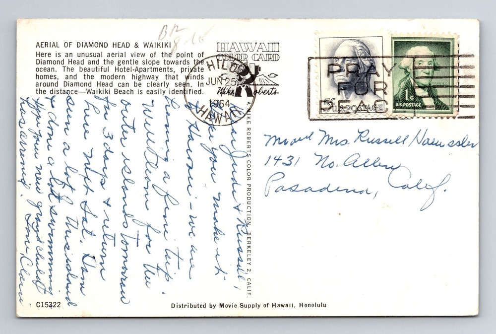 Aerial View of Diamond Head in Waikiki HI, Vintage 1964 Postcard