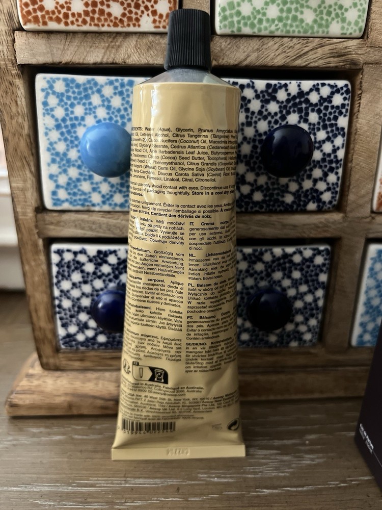 A beguiling fragrance that emulates the imaginary world beyond the surface of a mirror—bright opening notes developing into deep spice, damp earth and dry woods. Aroma: Woody, spicy, ambery Suited to: All genders; dreamers, pond-gazers, visionaries Key ingredients: Black Pepper, Frankincense, Sandalwood A sumptuous moisturising balm enhanced with hydrating Macadamia Nut and Sandalwood oils. Particularly suited to parched skin. Skin feel: Intensely hydrated, nourished Aroma: Citrus, vanilla, woody Key ingredients: Tangerine Rind, Vanille, Sandalwood