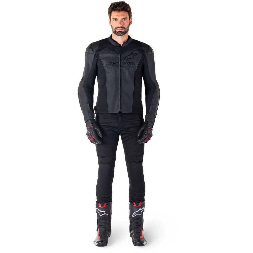Alpinestars V3 Ignition Missile Leather Motorcycle Jacket - Black/White 310032512