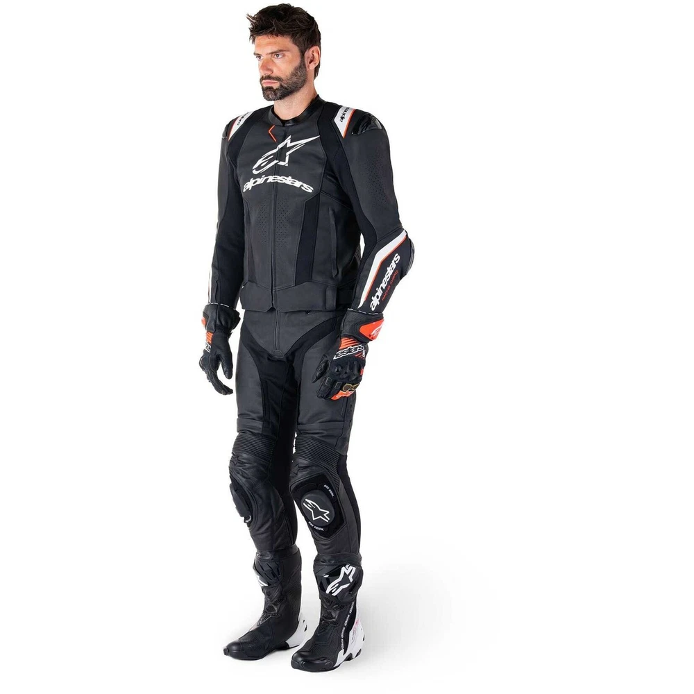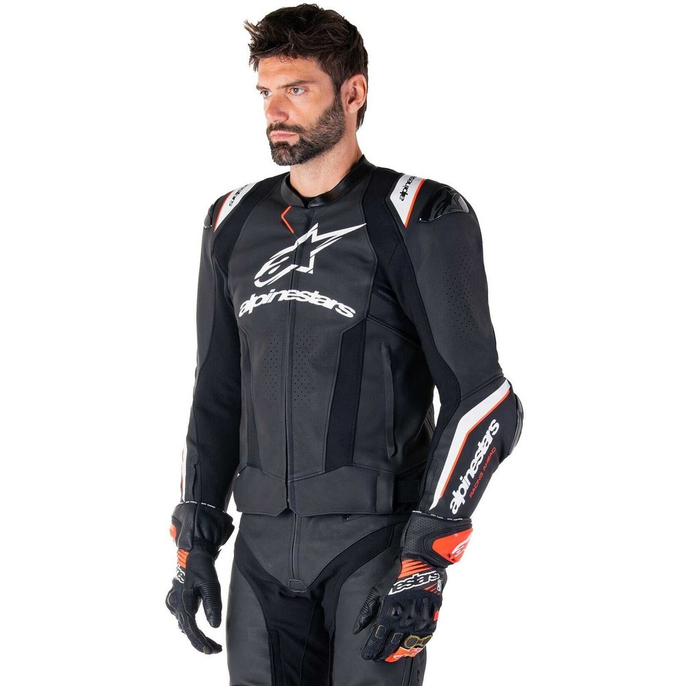 Alpinestars V3 Missile Leather Motorcycle Jacket - Black/White/Neon Red 31001251231