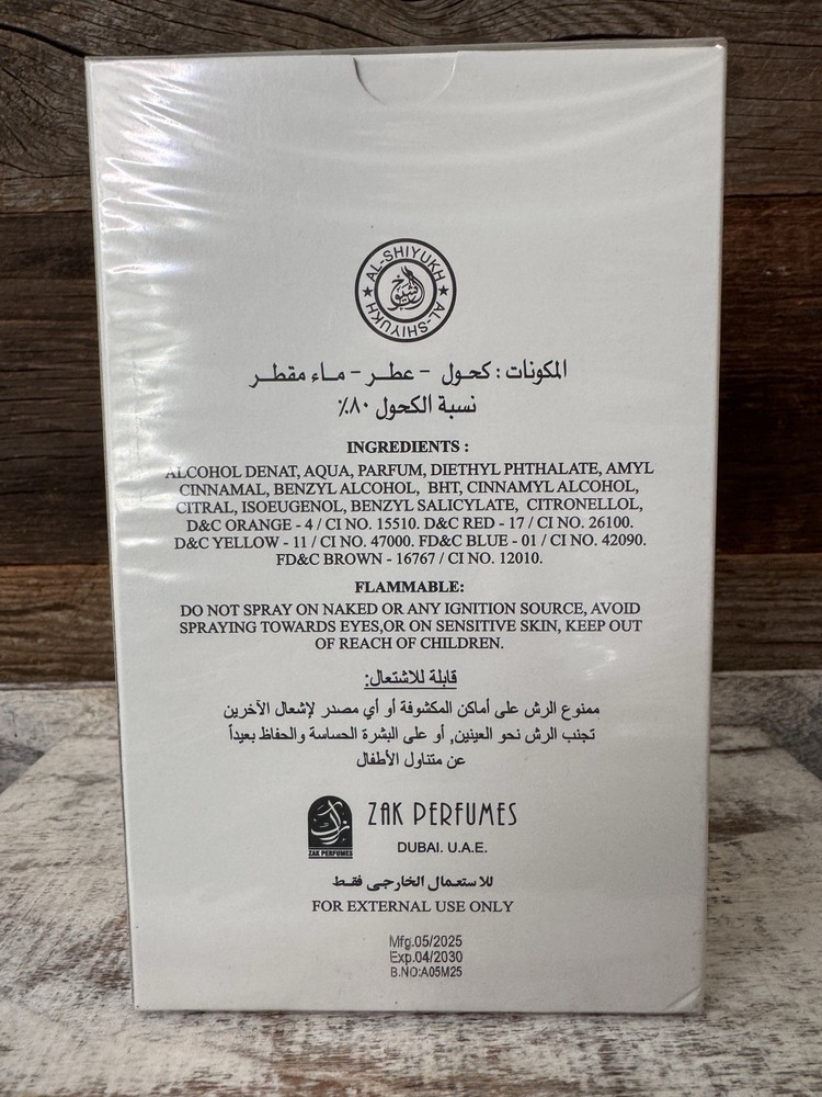 Ameer Al Oud Abyad is a deep, warm, and aromatic Middle Eastern fragrance known for rich oud and musk tones. Long-lasting and beautifully blended. Eau de Parfum From Zak Perfumes New and unused Excellent scent for fall and winter seasons MSRP: $59