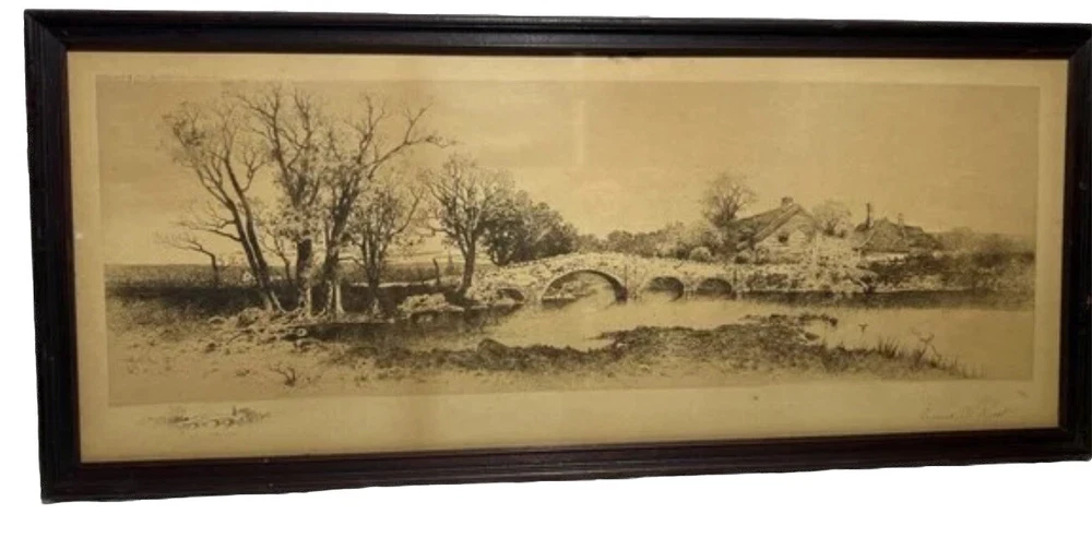 This antique print by Earnest C. Rost showcases beautiful landscapes from 1895. The medium-sized artwork measures 10.5”x24.5” and is framed to enhance its beauty. The print is a perfect addition to any art collection and is signed by the artist. The etching production technique gives the artwork a unique texture, and the landscapes theme is perfect for nature lovers. The artwork belongs to the 1850-1899 time period and is a great representation of art from that era. The artwork is categorized under Art and Art Prints, and its aspects include the artist’s name, type of print, year of production, size, framing, and subject. The antique print is a great way to add a touch of history to any room and is sure to impress art enthusiasts.