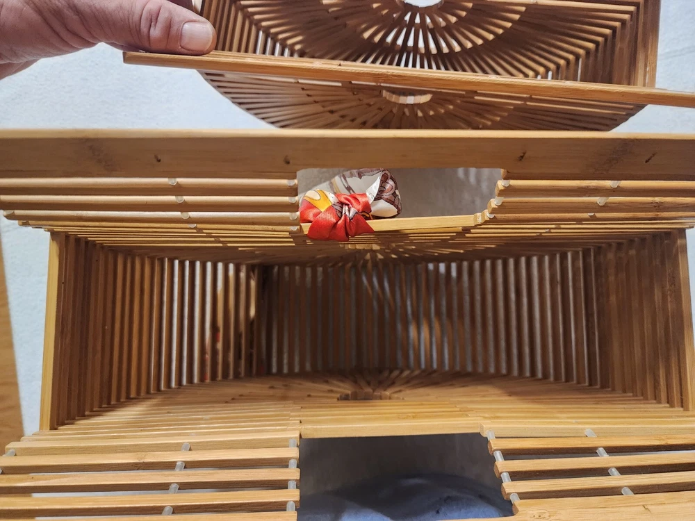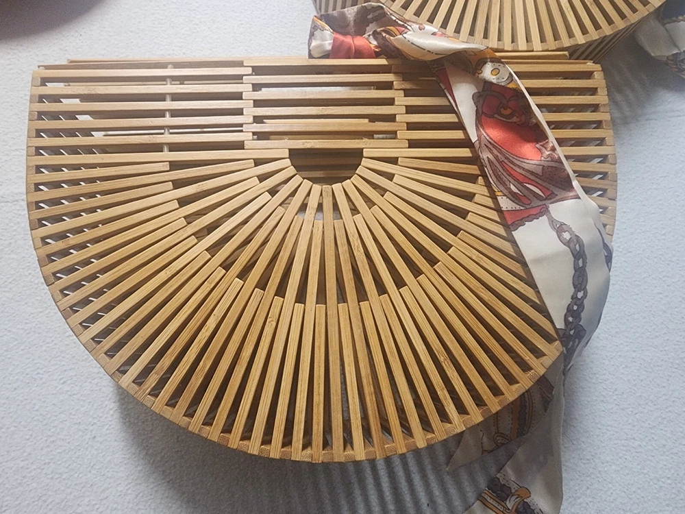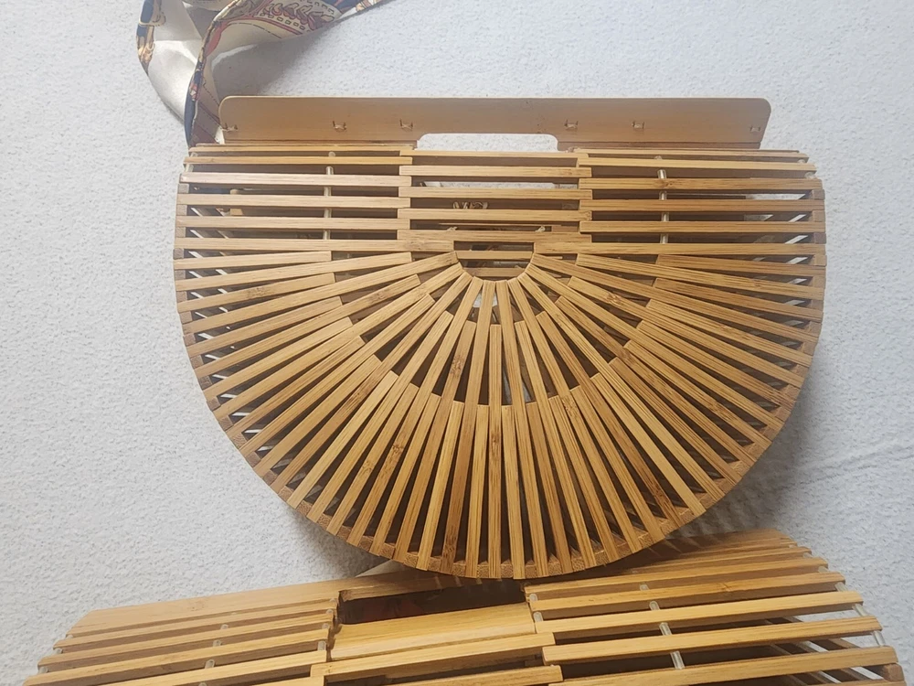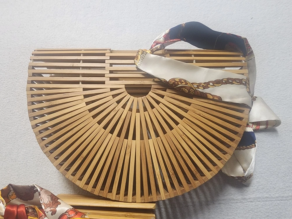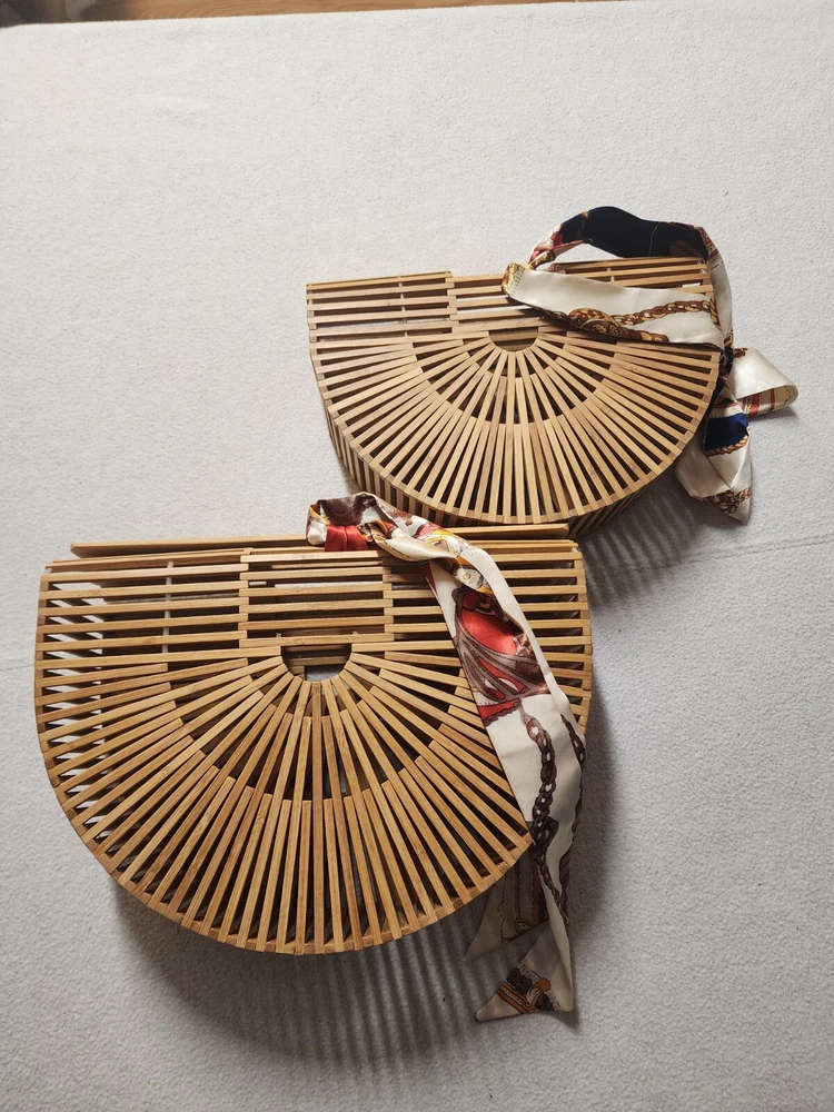 This beautiful pair of Ark bags with scarfs is a great deal for any fashion-forward woman. The exterior color is a natural bamboo color that adds a touch of elegance to your outfit. These bags are perfect for any occasion and can easily complement your wardrobe. Crafted from high-quality materials, these bags are durable and long-lasting. They are perfect for carrying your essentials and can easily fit your phone, wallet, and makeup. With their unique design and exquisite detailing, these bags are sure to turn heads wherever you go. Like New Bamboo Ark Bags W/ Scarfs Beautiful Pair Great Condition Great Deal obo Larger one is 13 inches wide 9 1/2 inches wide 4 inches across Smaller one is 11 1/2 wide 8 inches tall and 3 inches across Thanks and check my other listings for more Great Purses and Great Vintage items Thanks Please see Pictures for condition is LIKE New condition Very Nice Please See Pictures Thanks . Please see My Other Auctions For More Great Vintage items Thanks