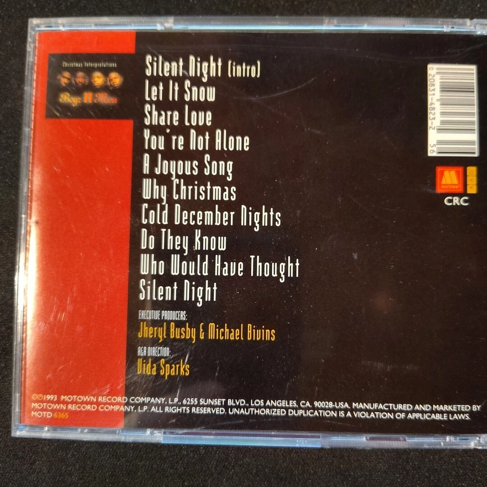 Get into the holiday spirit with Boyz II Men's "Christmas Interpretations" CD. This first edition album, released in 1993 under Motown record label, features 10 tracks of classic Christmas tunes. The CD comes in a standard jewel case and includes the original inlay. The album is graded as Mint (M) and is a great addition to any holiday music collection. With features like being sealed and in English language, this CD is perfect for anyone who loves the holiday season. Don't miss out on this opportunity to add a piece of music history to your collection.