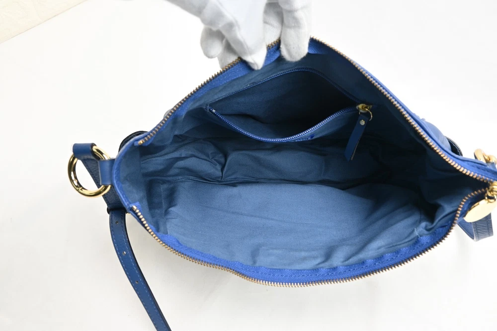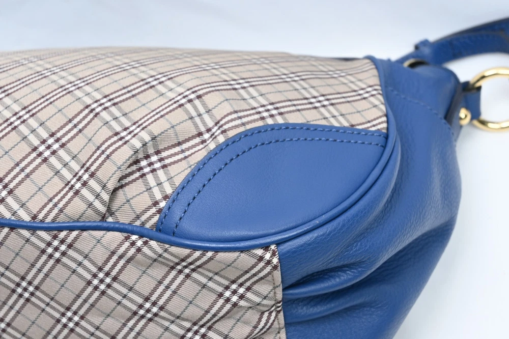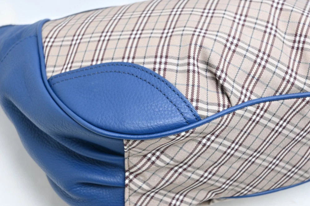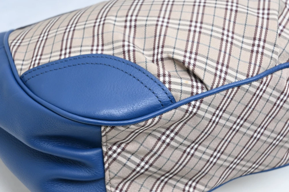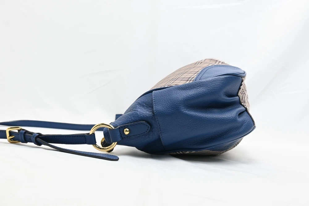 BURBERRY Vintage Blue Nova Check Used Canvas Leather Crossbody Bag Blue Label