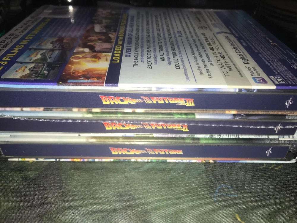 Title: Back to the Future Trilogy 35th Anniversary Limited Edition Best Buy Exclusive Steelbook Boxset Condition: Brand new and sealed. Has a bit of wear here and there but nothing major. Includes: All three films in individual Steelbook cases, housed in a slipbox. Includes 4K Blu-Ray, HD Blu-Ray and Digital Copy. Shipping: Free (US Only). No returns on opened items, thanks! Thanks for checking me out! Don't be shy to throw me an offer or ask any questions. I can try to send more photos if I can but camera isn't the best.