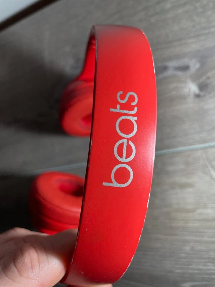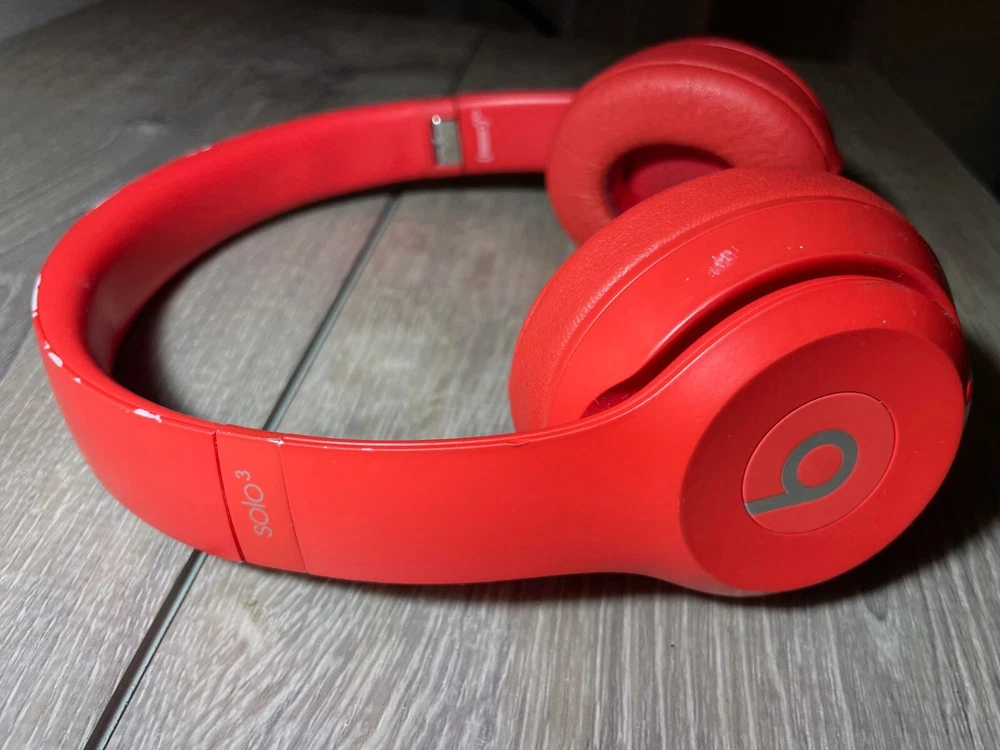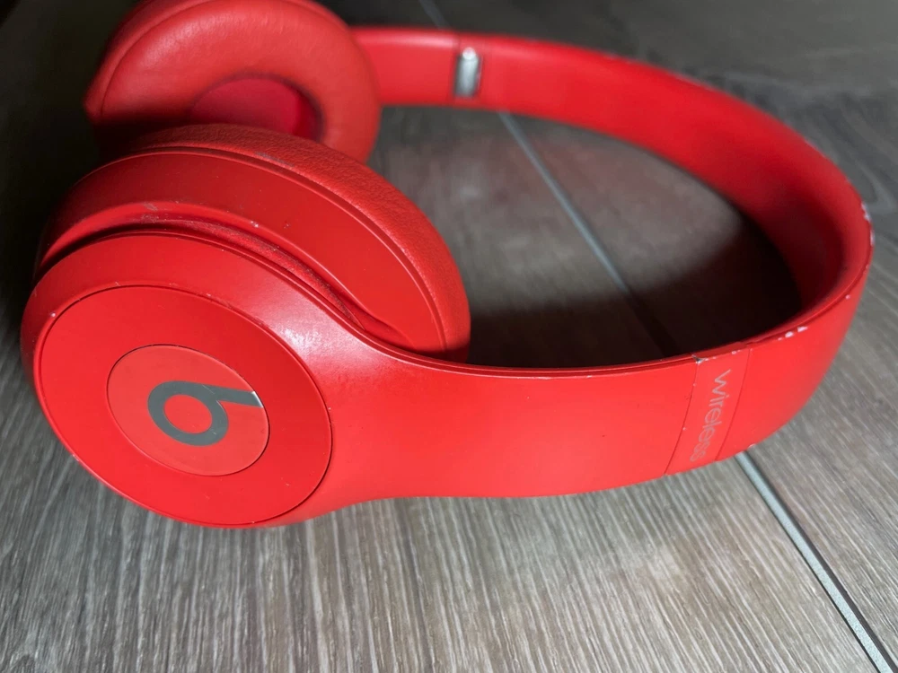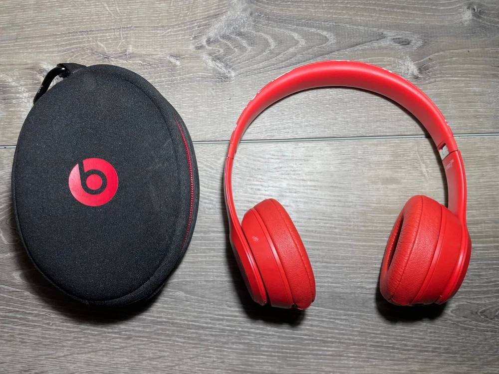 Beats solo 3 product red edition headphones with case. Hinges don't snap into place but still fully functional. Also has wear near top headband. Tested and sound great!