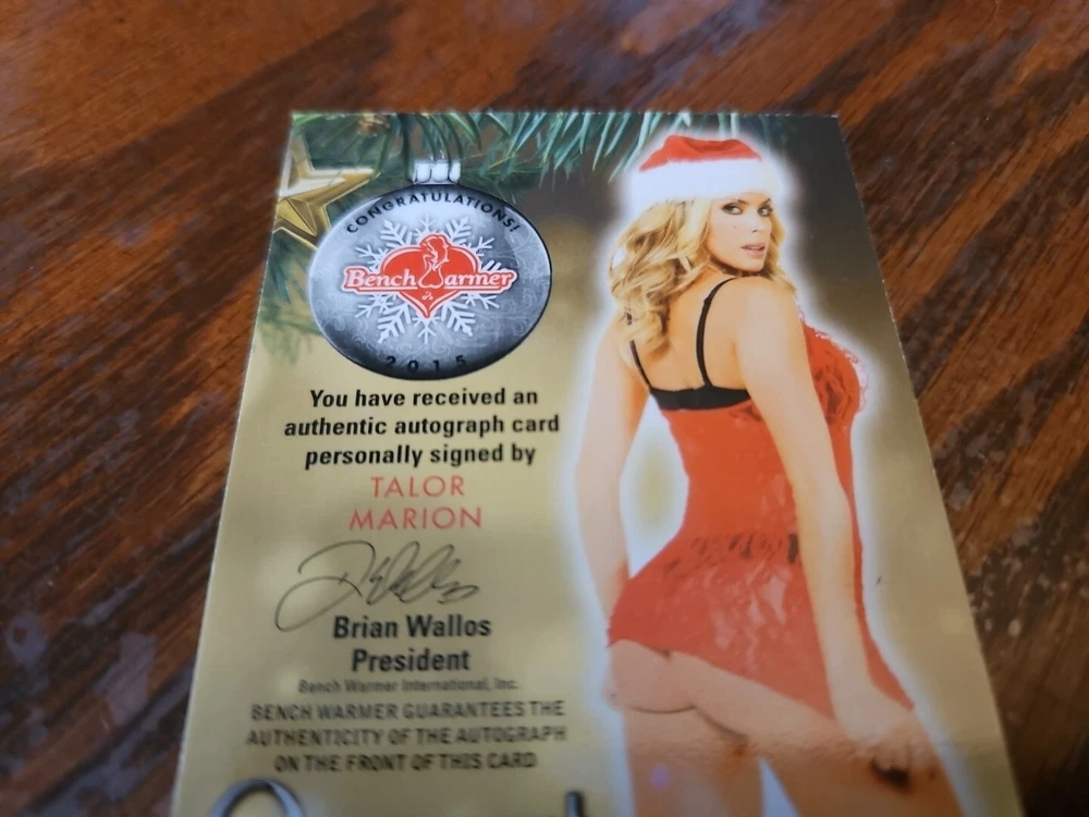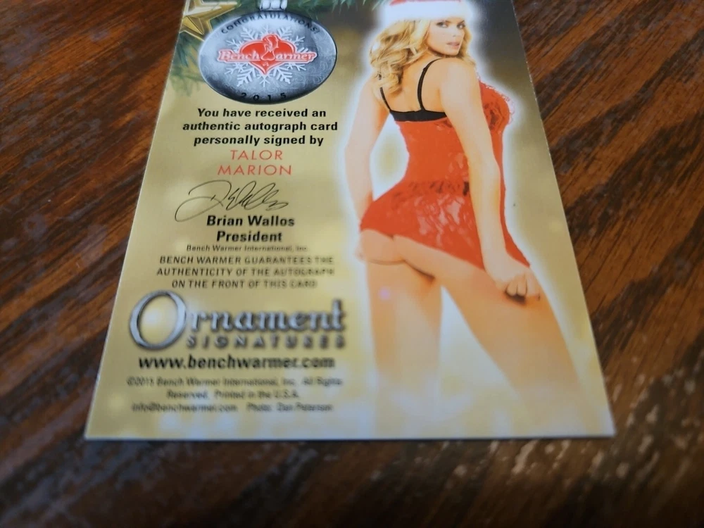Benchwarmer 2015 Talor Marion Happy Holidays Ornament Signatures Autograph Card Playboy Playmate Please, look at all the pictures. Please check out my other eBay accounts... https://www.ebay.com/usr/kimmyrael https://www.ebay.com/usr/matlac99 https://www.ebay.com/usr/lacr6837 https://www.ebay.com/usr/malac9440 https://www.ebay.com/usr/lacr_3567 https://www.ebay.com/usr/lacroki8 https://www.ebay.com/usr/lacroki9 Shipping only to the continental US unless you contact me first. Will combine shipping!!!